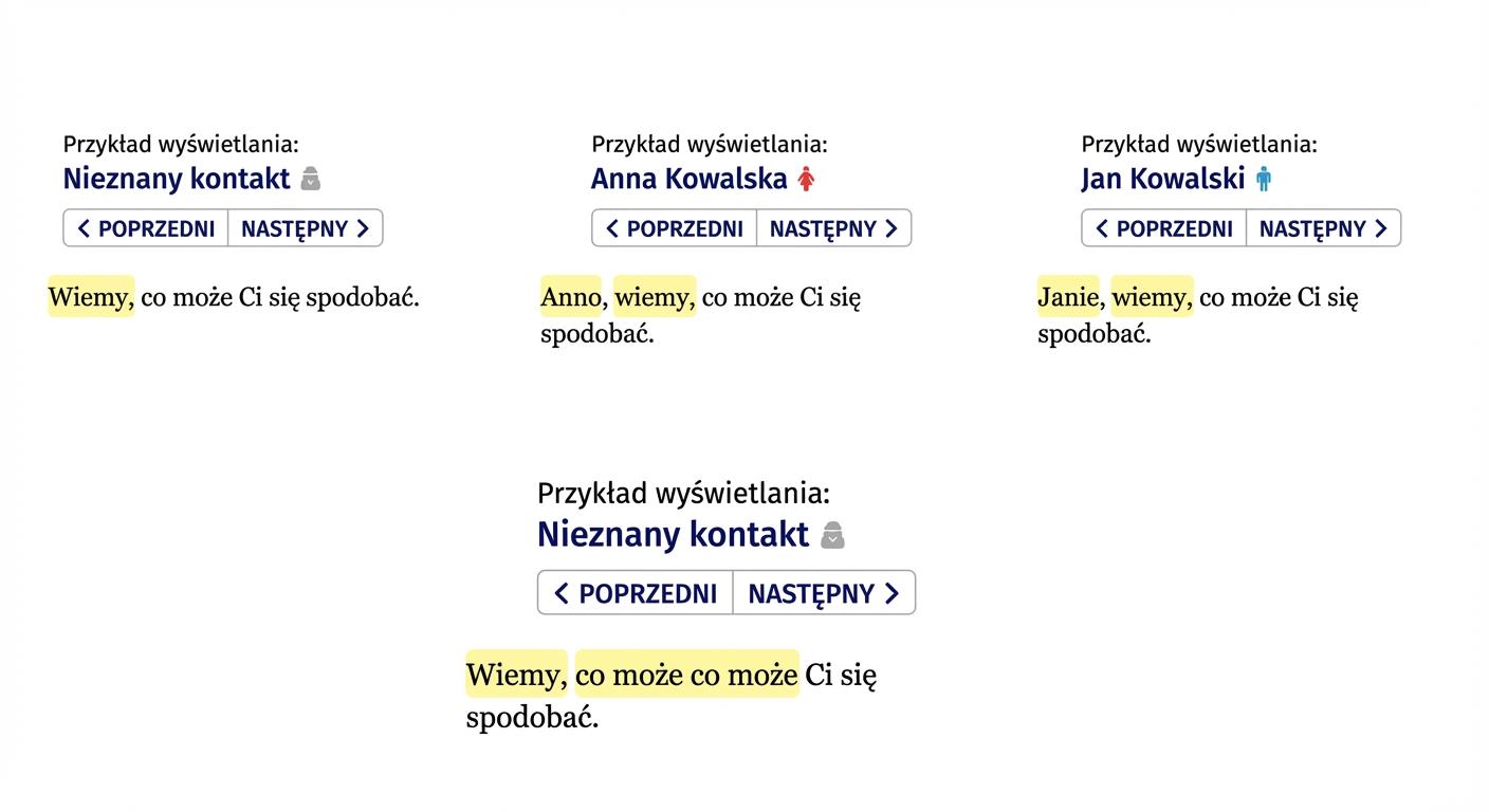 Przy użyciu zwrotu grzecznościowego w preheaderze należy zwrócić szczególną uwagę na nieznane kontakty. Dla nich preheader musi zaczynać się od jego pierwszego słowa.