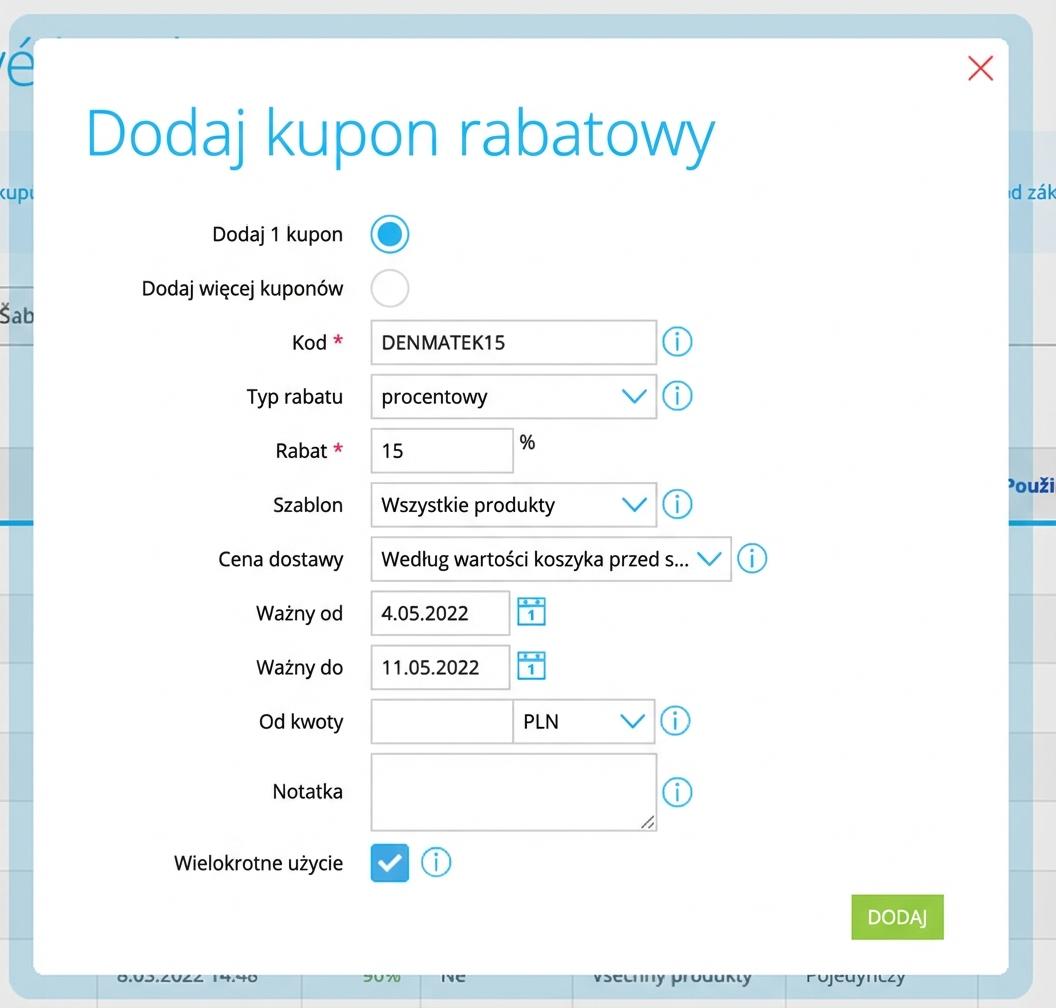 Każdy odbiorca otrzyma ten sam kod rabatowy ("DENMATEK15").