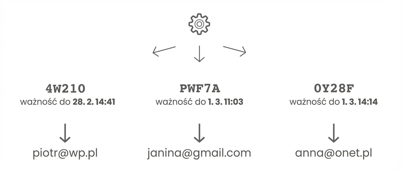- kody mają dokładnie ustawioną ważność, która zaczyna się liczyć od momentu wysłania kodu automatycznym e-mailem
