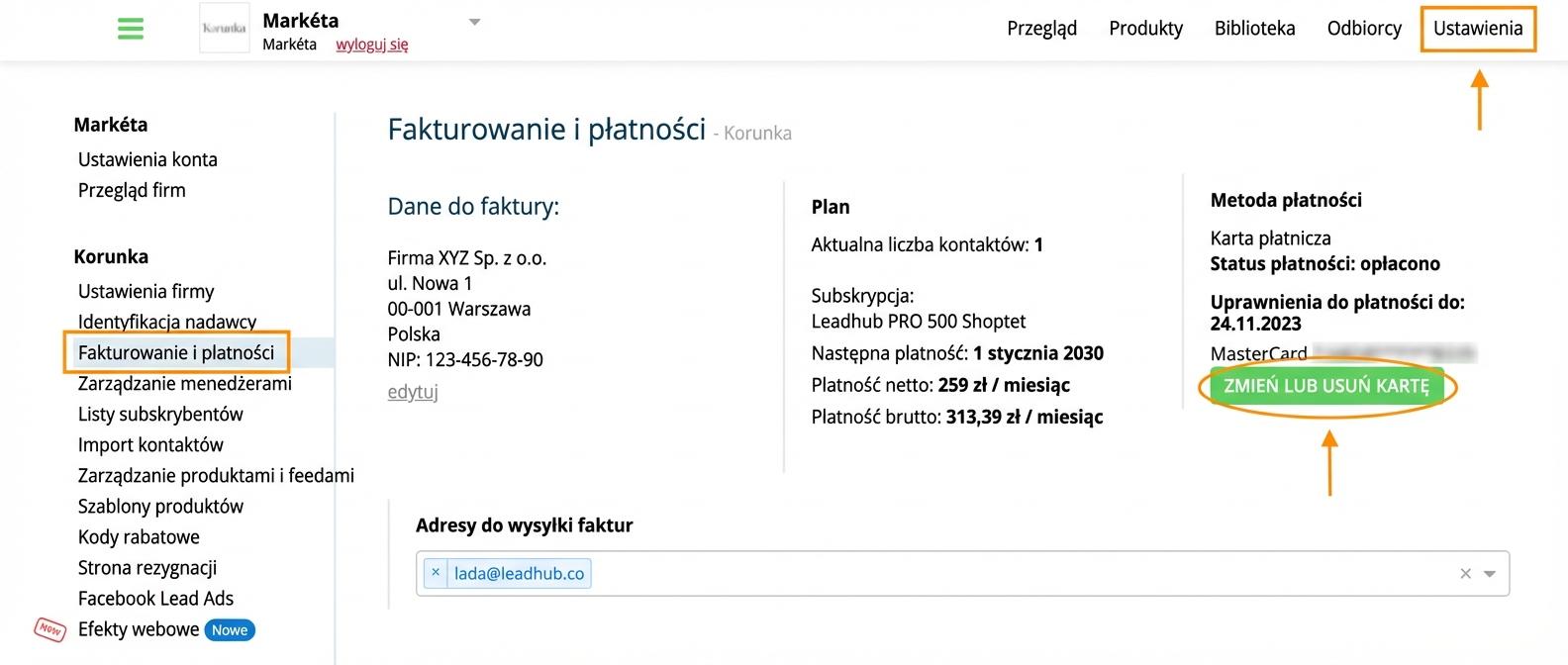 Po odinstalowaniu dodatku przestaje działać śledzenie klientów w e-sklepie. Zalecamy więc zawiesić Leadhub wyłącznie poprzez usunięcie karty płatniczej.