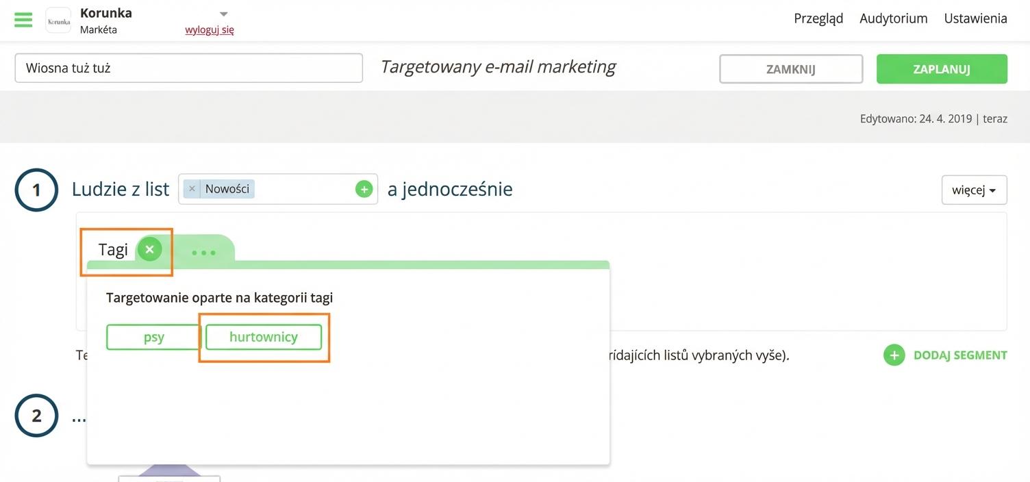 Za pomocą reguł segmentacji wyślesz e-mail tylko do kontaktów hurtowników.