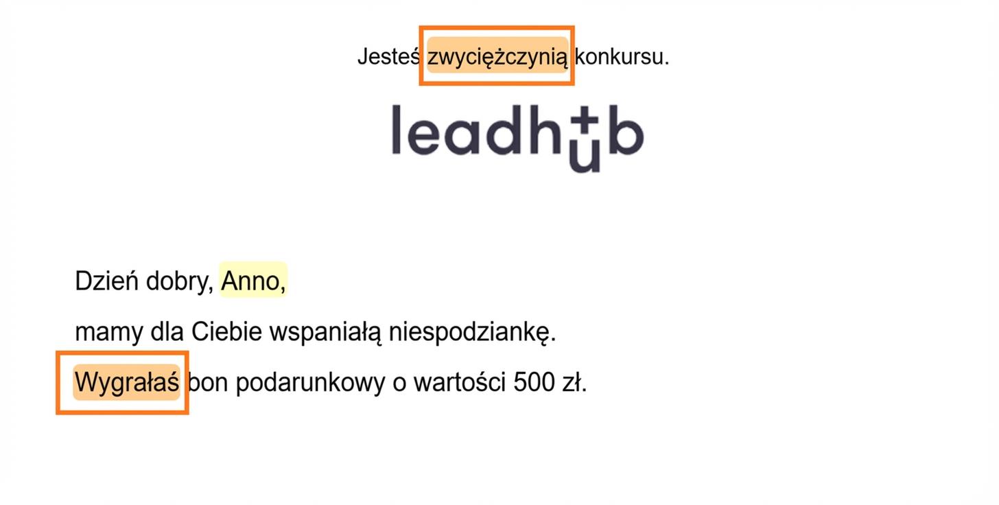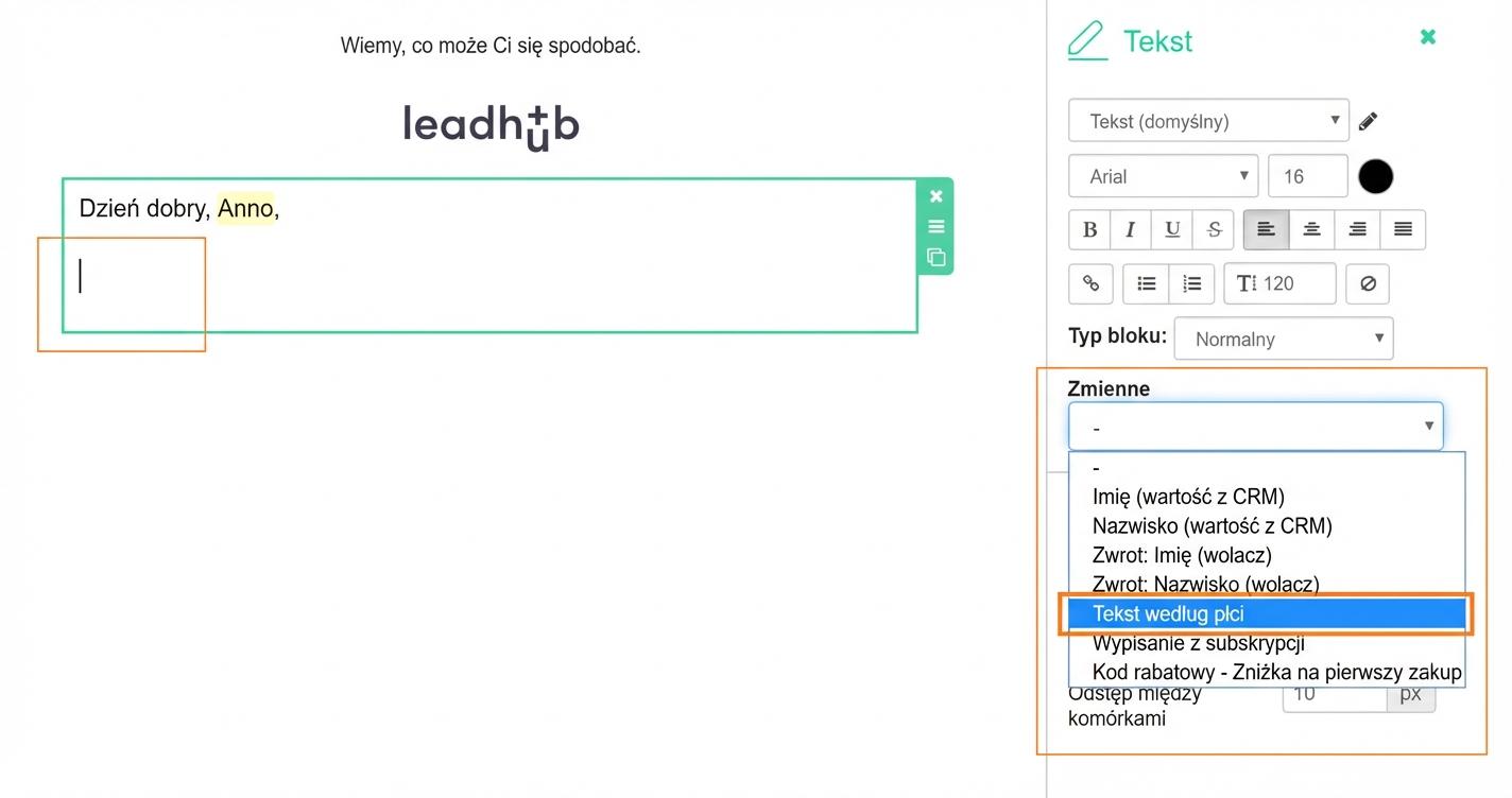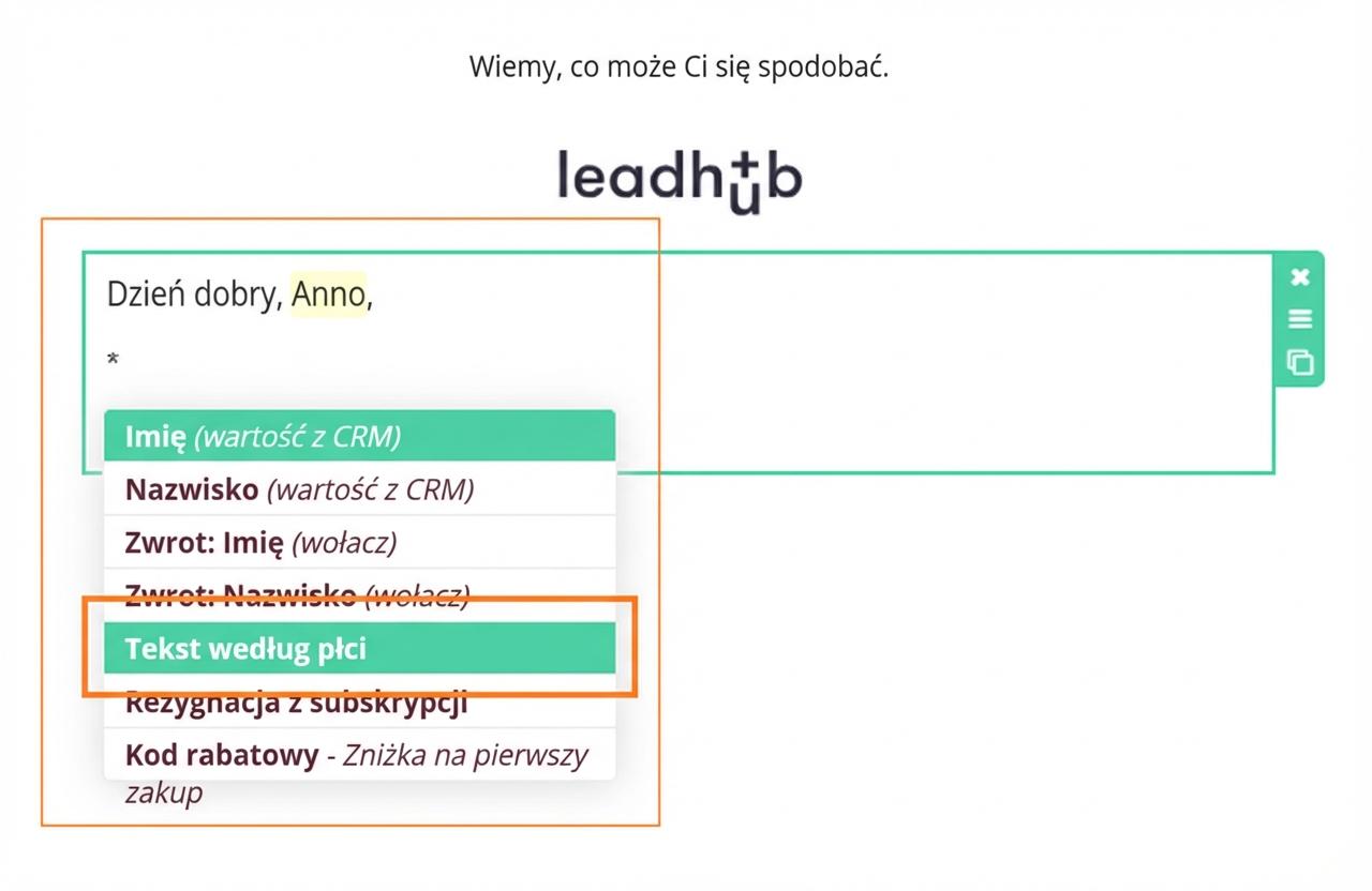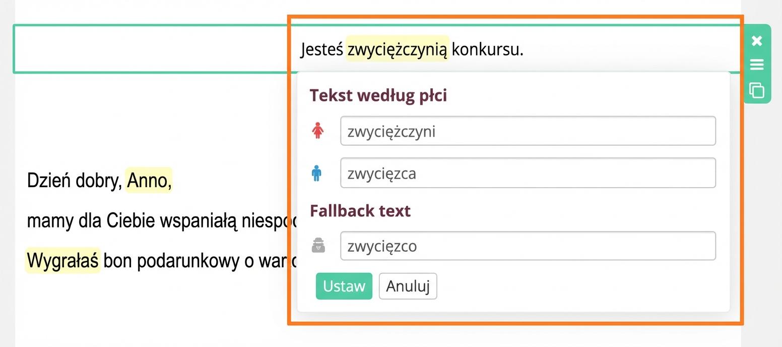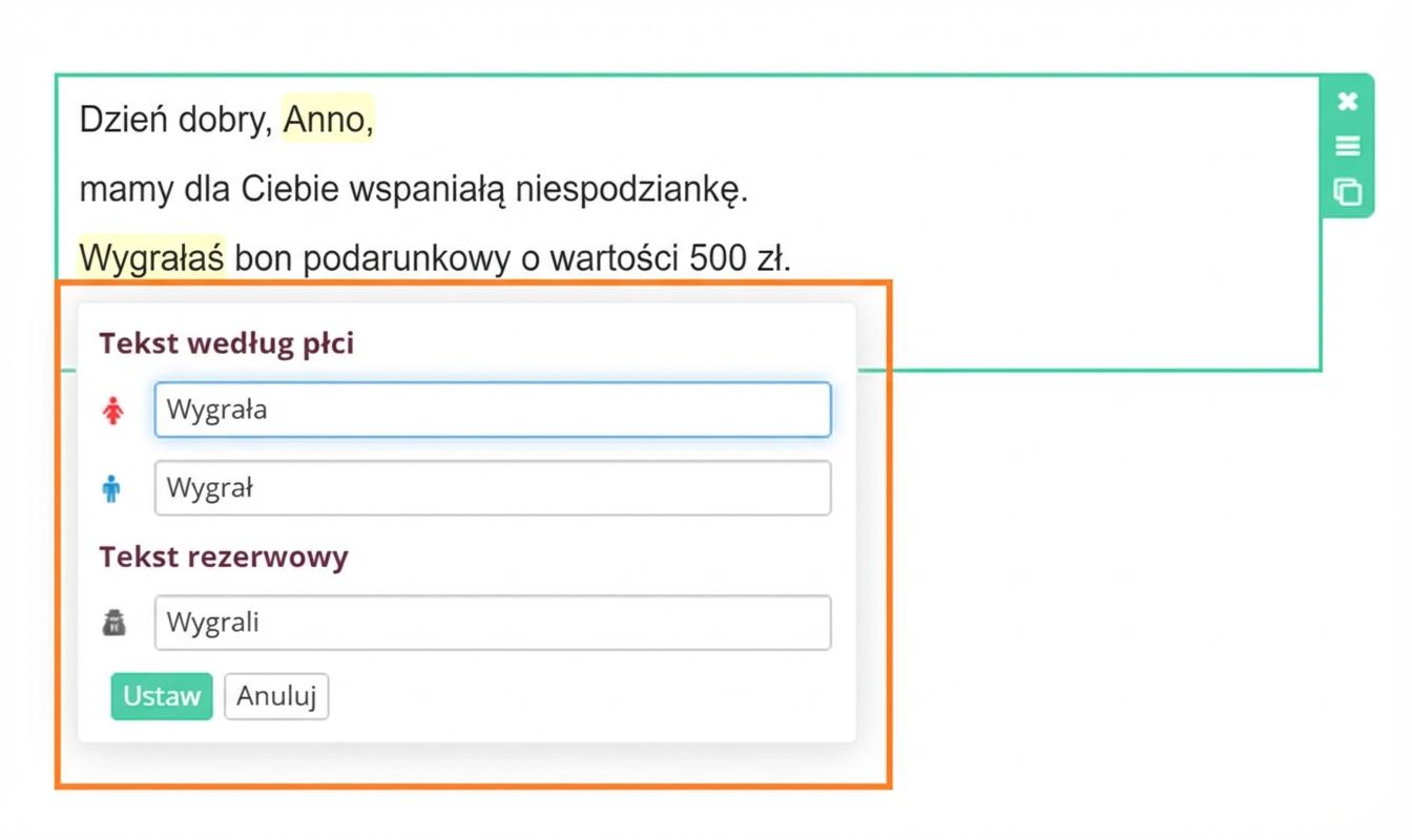 Jeśli w e-mailu używasz zwrotu grzecznościowego, ustaw również odmianę tekstu według płci.