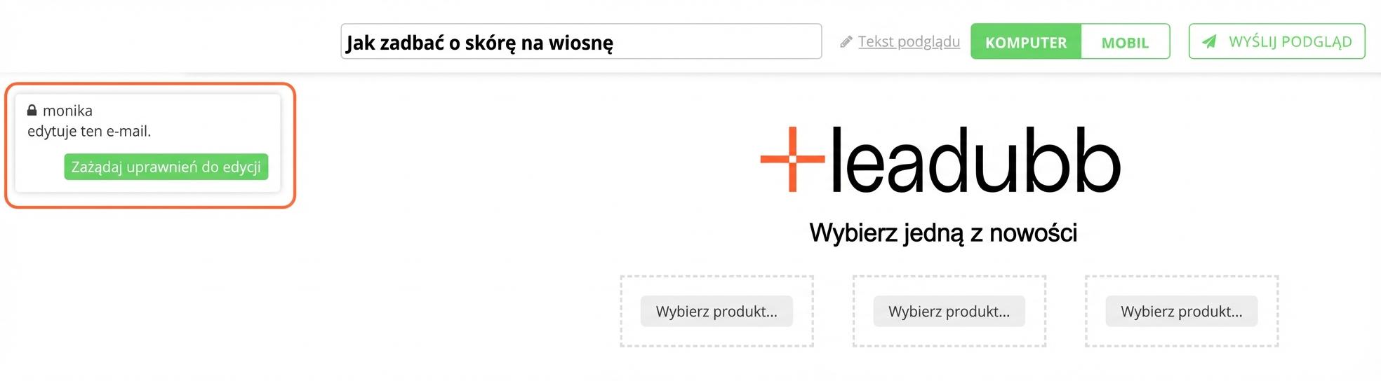Jeśli pracujesz nad tworzeniem kampanii, nikt inny nie będzie miał do niej dostępu. Tylko w przypadku, gdy poprosi o dostęp, a Ty go potwierdzisz. Nie zdarzy się więc, że ktoś nadpisze Twoje zmiany albo że nad jednym e-mailem będzie pracować więcej osób w tym samym czasie.