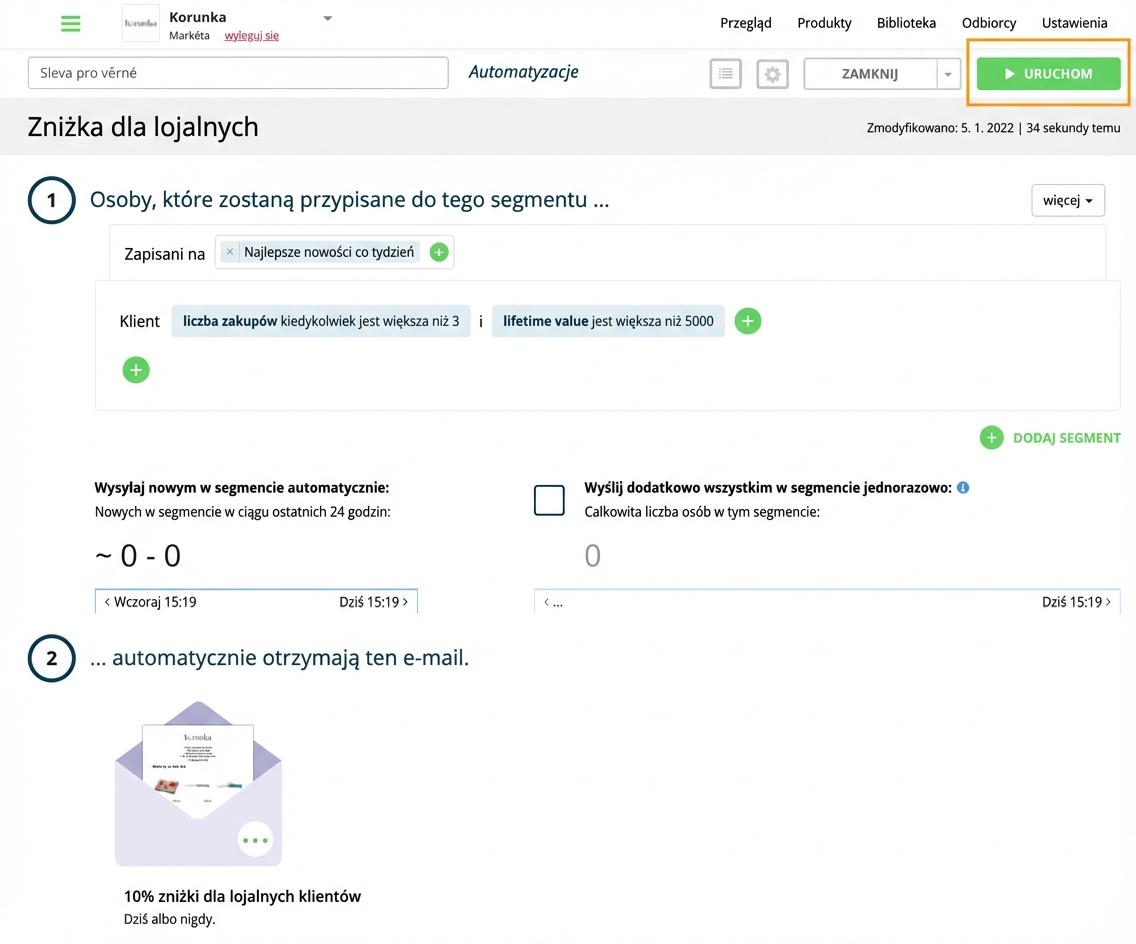 Kampanię uruchomisz, klikając zielony przycisk „Uruchom” w prawym górnym rogu.