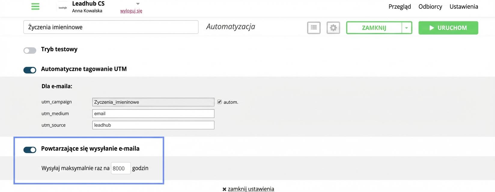 Możesz wybrać, czy chcesz, aby odbiorca otrzymał e-mail z kampanii automatycznej tylko raz czy wielokrotnie.