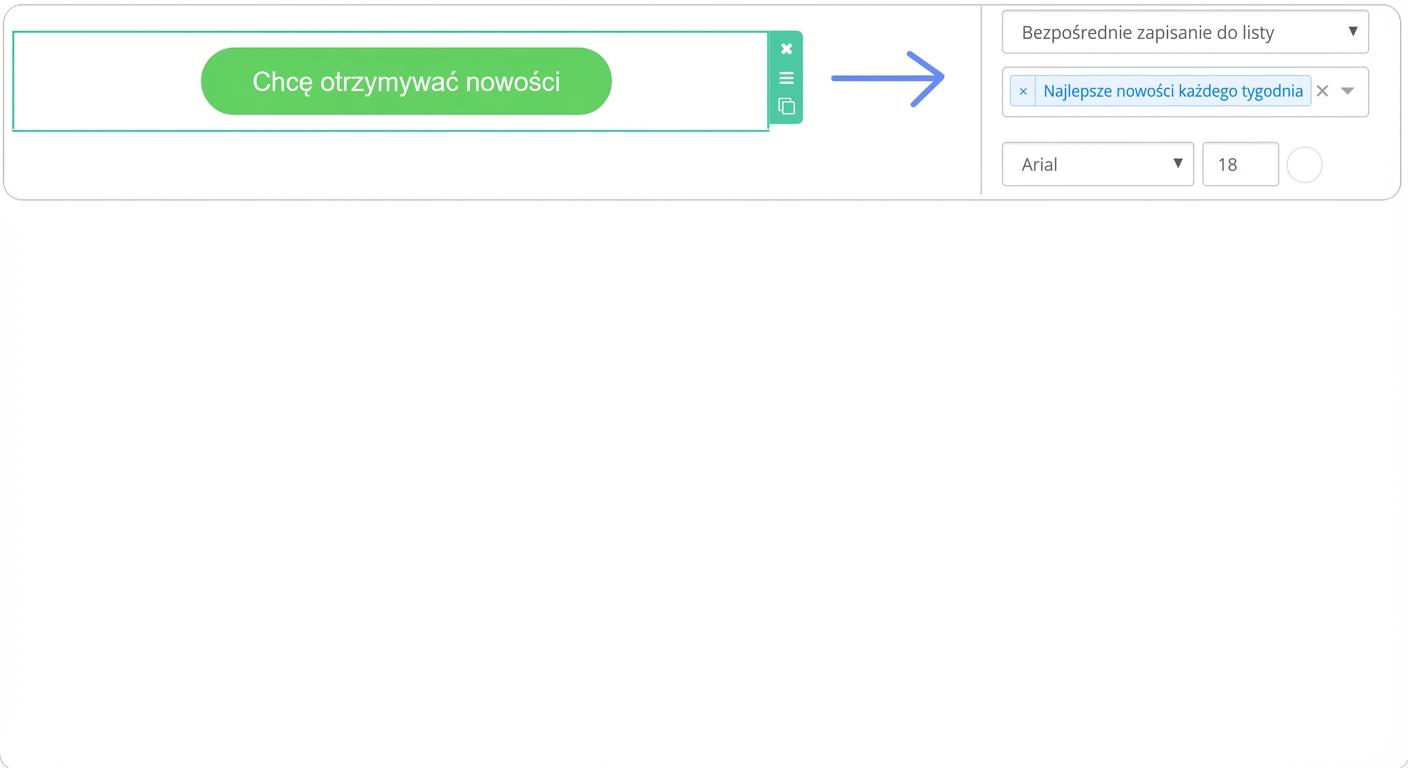 Kontakty na swojej stronie zbierasz za pomocą okna pop-up. Zachęcasz odwiedzających ciekawą treścią, na przykład cotygodniowymi przepisami do skrzynki. Te kontakty trafiają do osobnej bazy danych „Przepisy co tydzień”. Jednocześnie jednak kontakty nie są zapisane do listy „Nowości w asortymencie”, na którą co tydzień wysyłasz wybór najlepszych produktów. Zachęć odbiorców przepisów również do tej opcji.