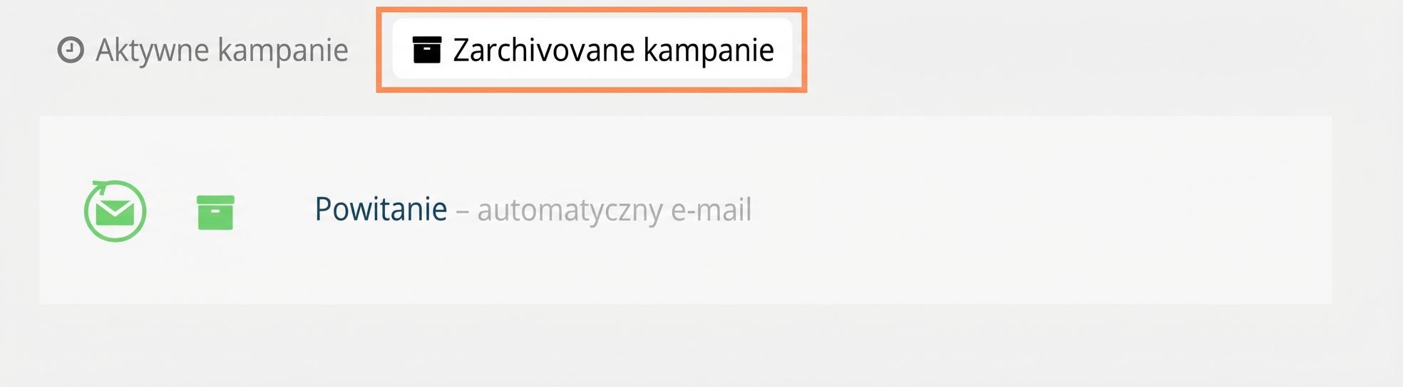 2. Automatycznie utworzy się zakładka „ Zarchiwizowane kampanie”. Po przełączeniu z „Aktywne kampanie” wyświetlą się wszystkie zarchiwizowane kampanie. Jeśli były już uruchomione w przeszłości, ich wyniki będą dla Ciebie dostępne.
