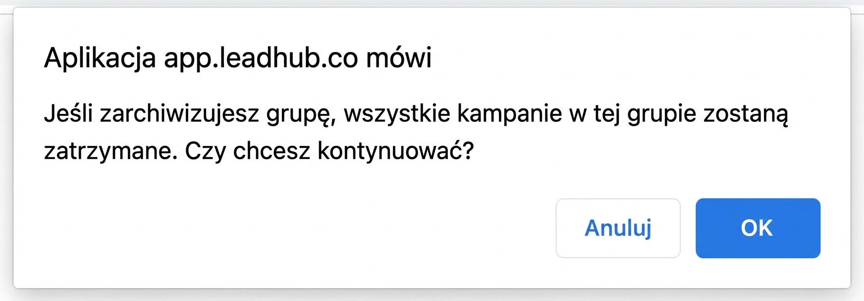Jeśli w grupie, którą archiwizujesz, znajdują się aktywne kampanie, zostaną one automatycznie wstrzymane.