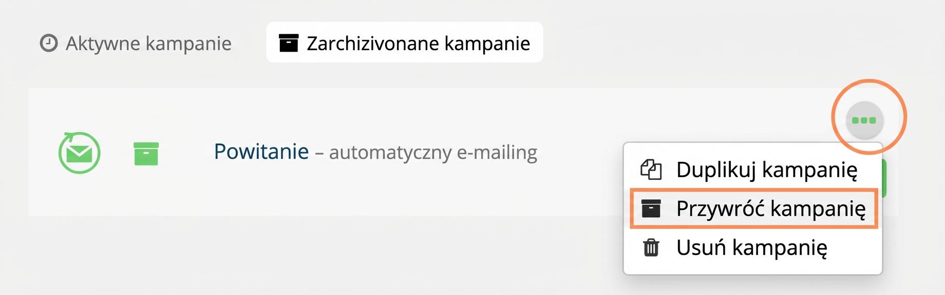 1. Wybierz kampanię, którą chcesz zarchiwizować, i kliknij trzy kropki: