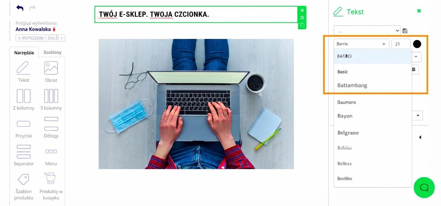 Uwaga: Własne fonty nie są obsługiwane przez wszystkie klienty poczty e-mail. Fonty są obsługiwane przede wszystkim na urządzeniach Apple. Udział klientów poczty e-mail na świecie: https://emailclientmarketshare.com