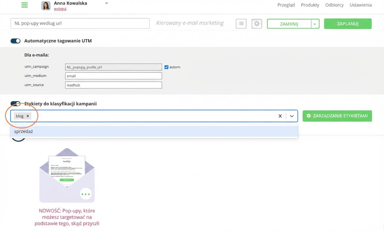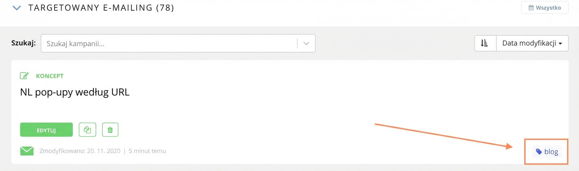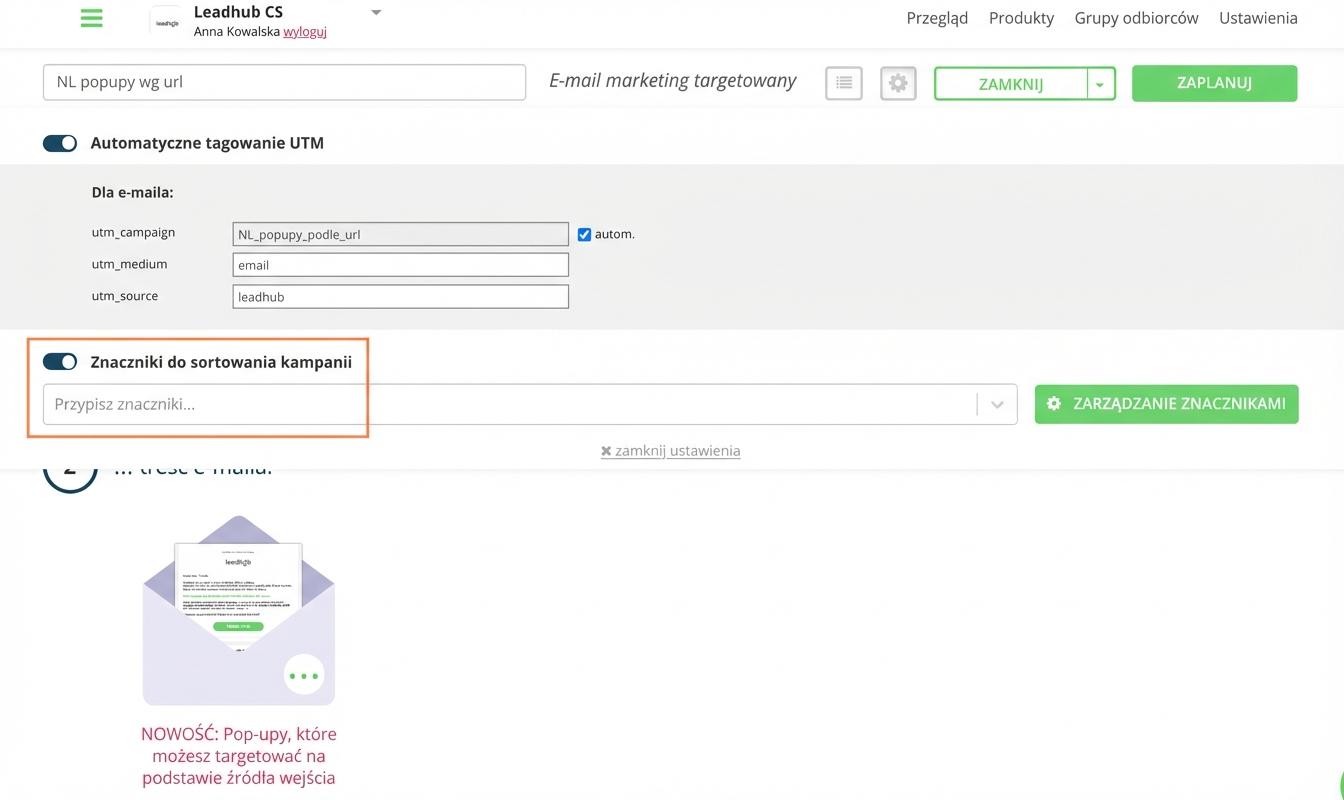 Tagowanie kampanii według ich typu