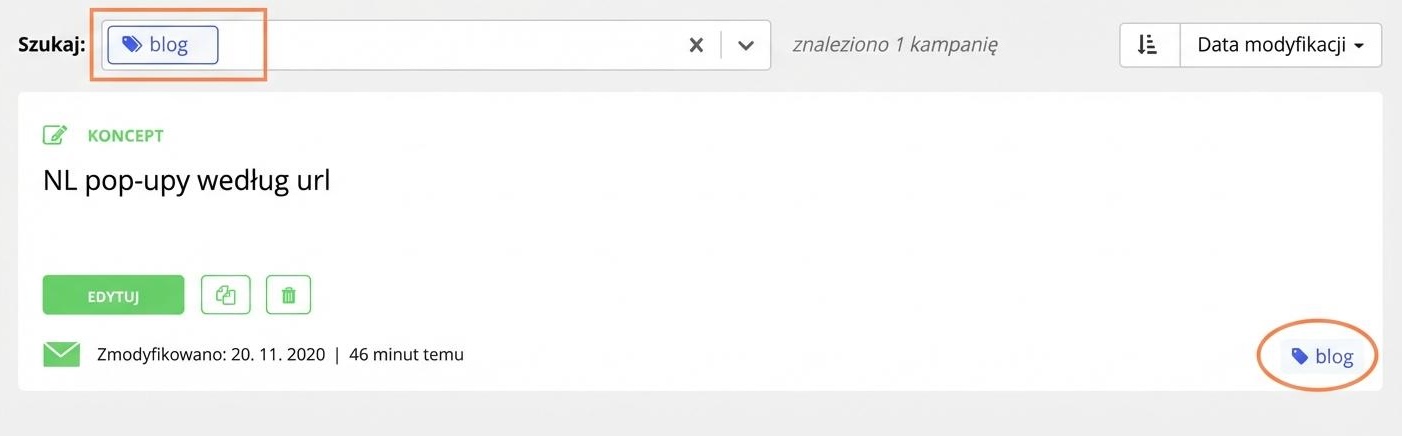 Przypisz do newsletterów etykiety, które pomogą Ci lepiej orientować się na ich liście i wyszukiwać. Dzięki temu możesz podzielić newslettery według ich typu (np. treściowe i sprzedażowe). Na podstawie przypisanej etykiety możesz przefiltrować tylko odpowiadające kampanie.