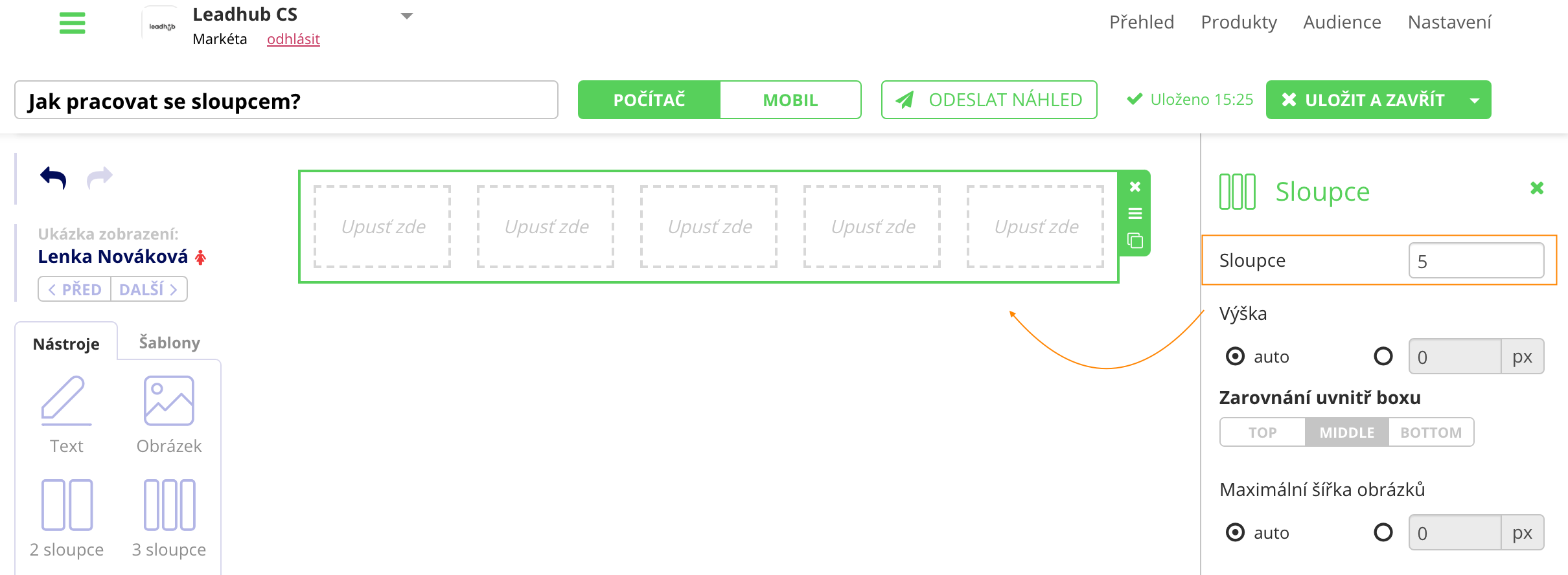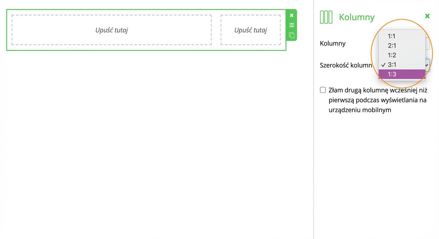 Po przeciągnięciu możesz w prawej części edytora zmienić liczbę kolumn.
