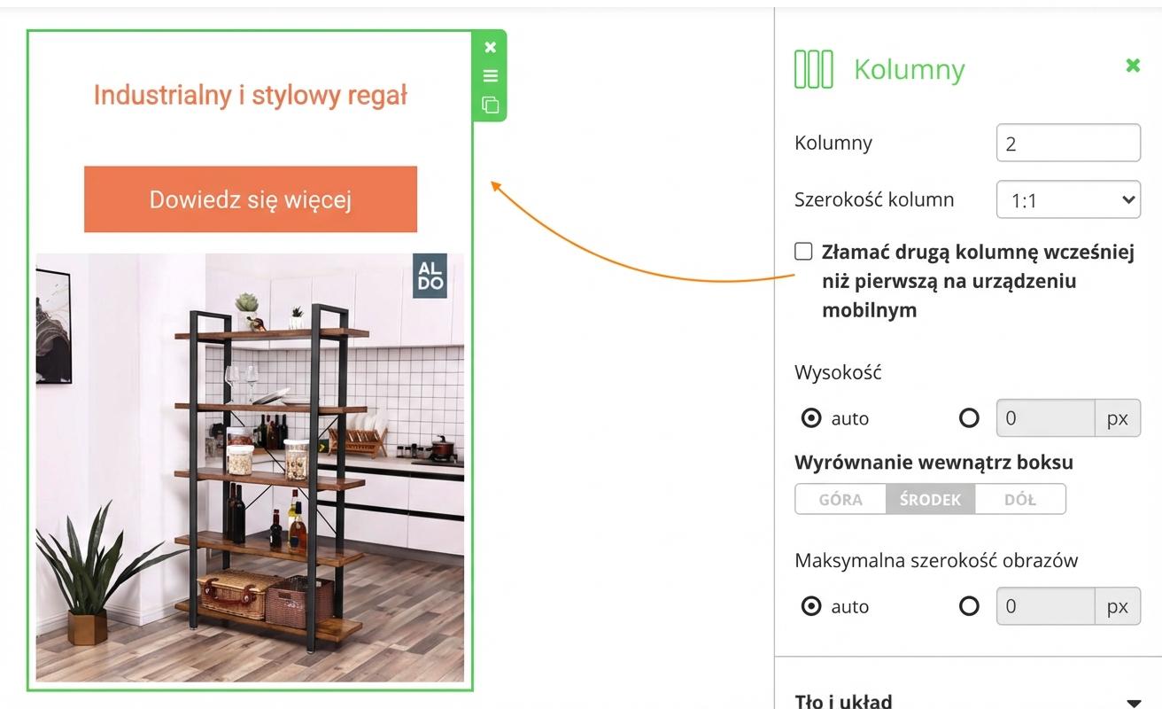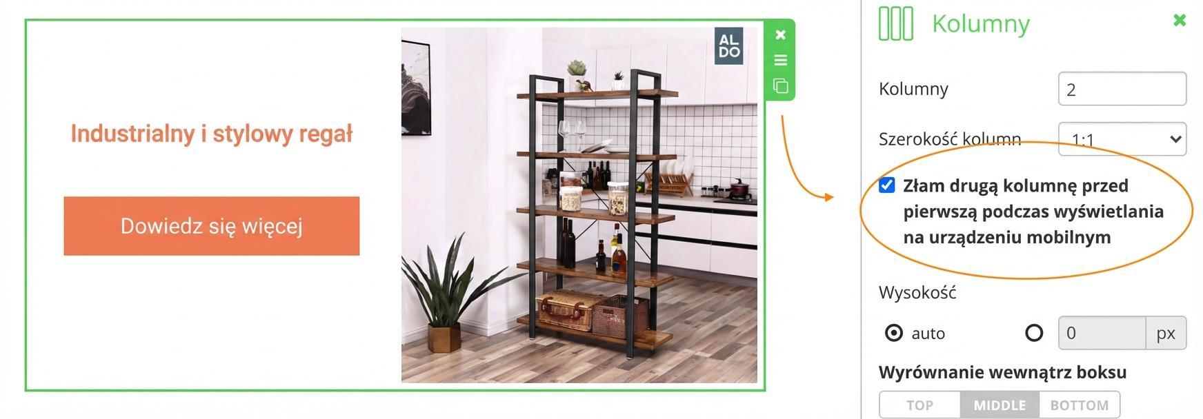 Jeśli nie zaznaczysz tej opcji, zawsze najpierw będzie wyświetlana zawartość pierwszej kolumny. W tym przypadku: nazwa, przycisk i obrazek. Zawartości poszczególnych kolumn nie byłyby wtedy wyświetlane jednolicie – w niektórych najpierw byłaby nazwa, w innych zdjęcie produktu.