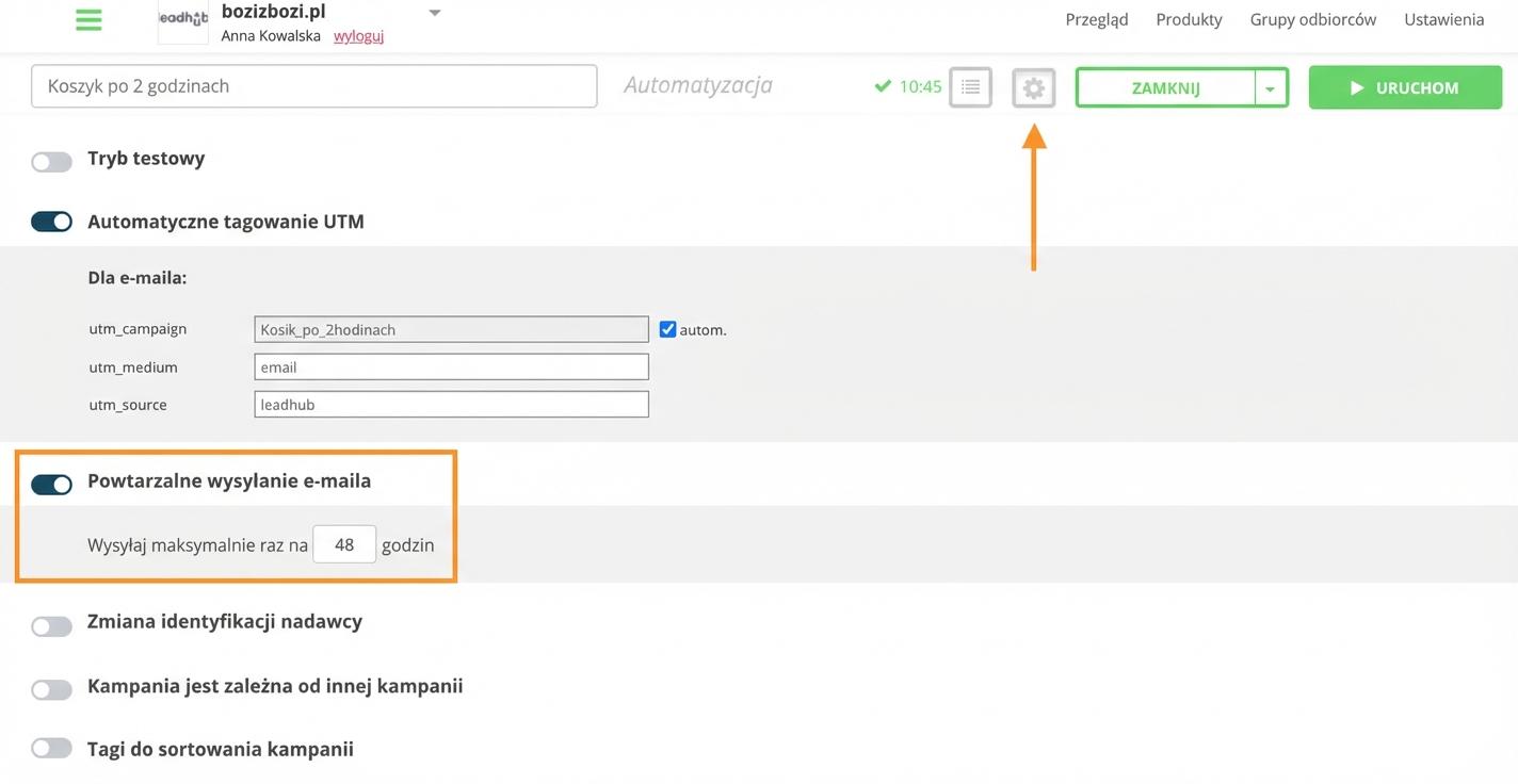 W każdej kampanii automatycznej można ustawić ponowną wysyłkę e-maila z wybranej kampanii.