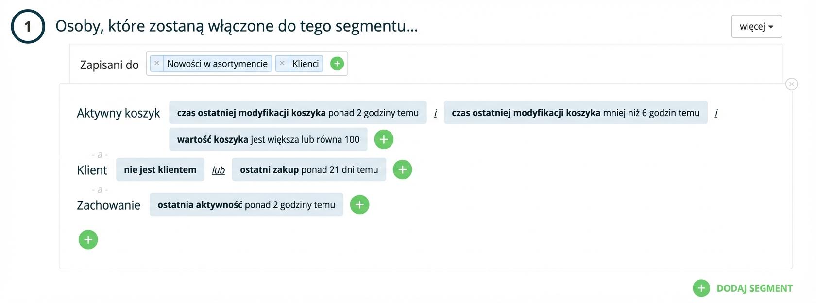 Co to oznacza? Jeśli odbiorca z danej kampanii (np. Porzucony koszyk) otrzyma e-mail, może otrzymać go ponownie tylko wtedy, gdy ponownie trafi do zdefiniowanego segmentu odbiorców wybranego dla danej kampanii (spełni ustawione warunki) oraz upłynie czas ustawiony dla ponownej wysyłki tego samego e-maila z tej konkretnej kampanii.