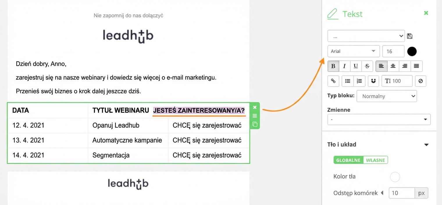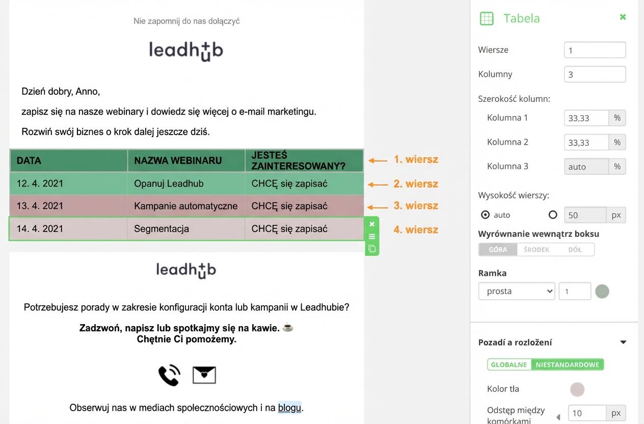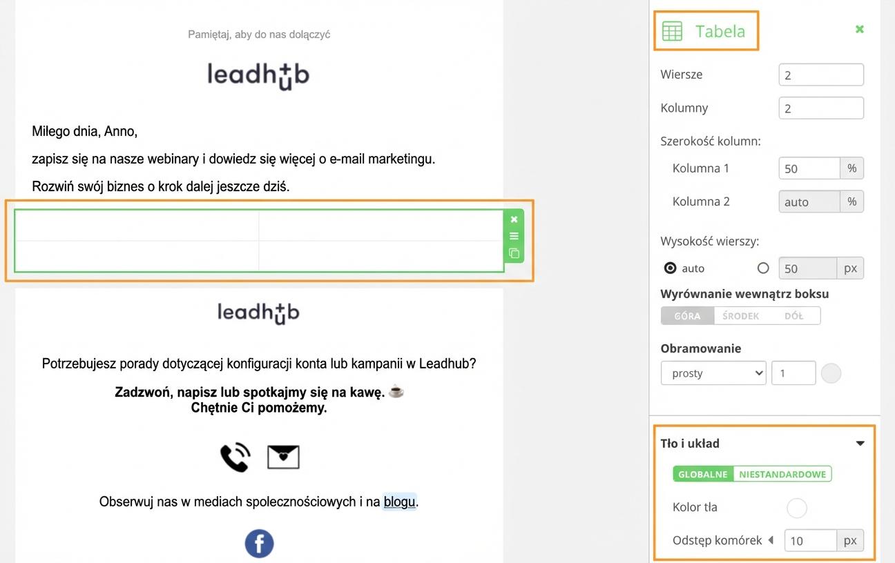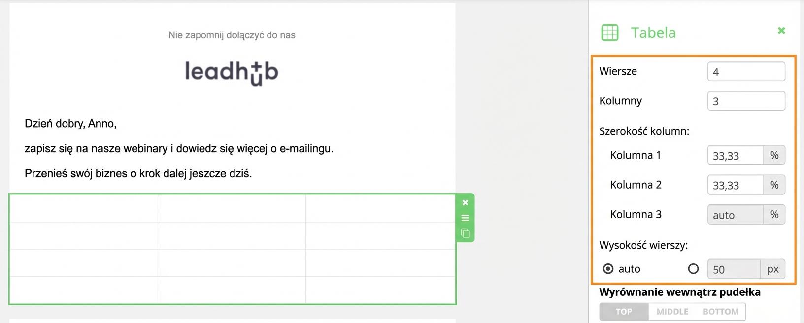 Za pomocą panelu edycji po prawej stronie edytora możesz zmieniać wygląd i układ tabeli.