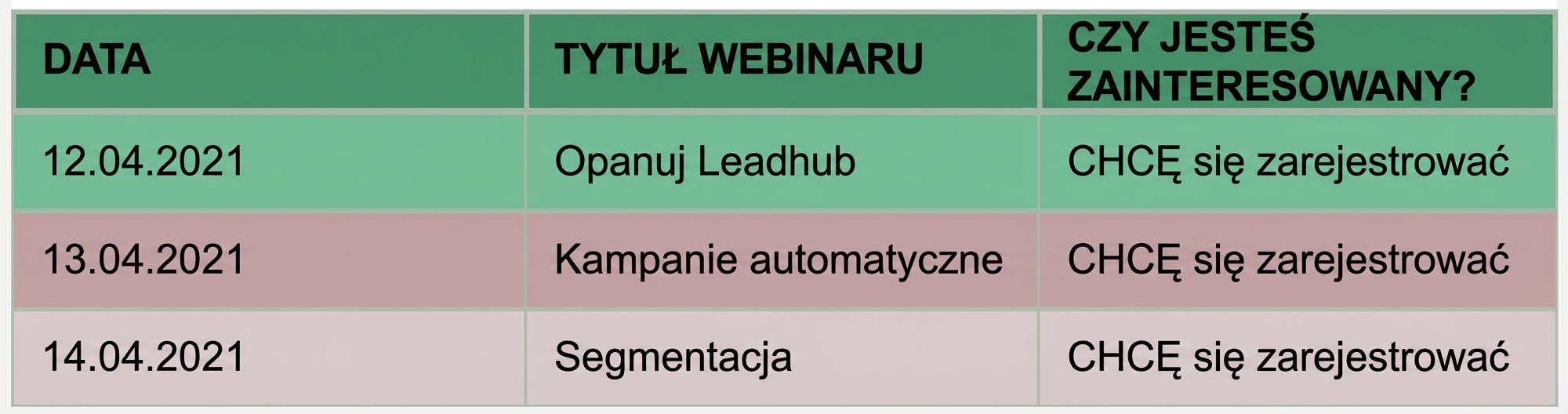 Tabela sprawdzi się na przykład do cenników, porównania zalet i parametrów towarów, podsumowania planowanych akcji lub do stworzenia menu.
