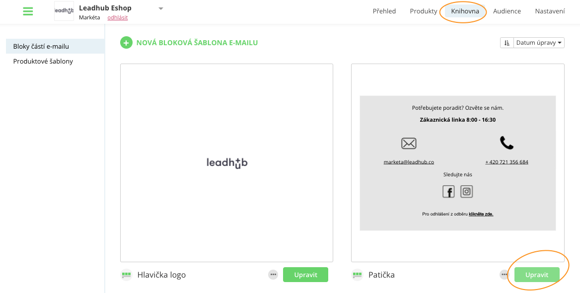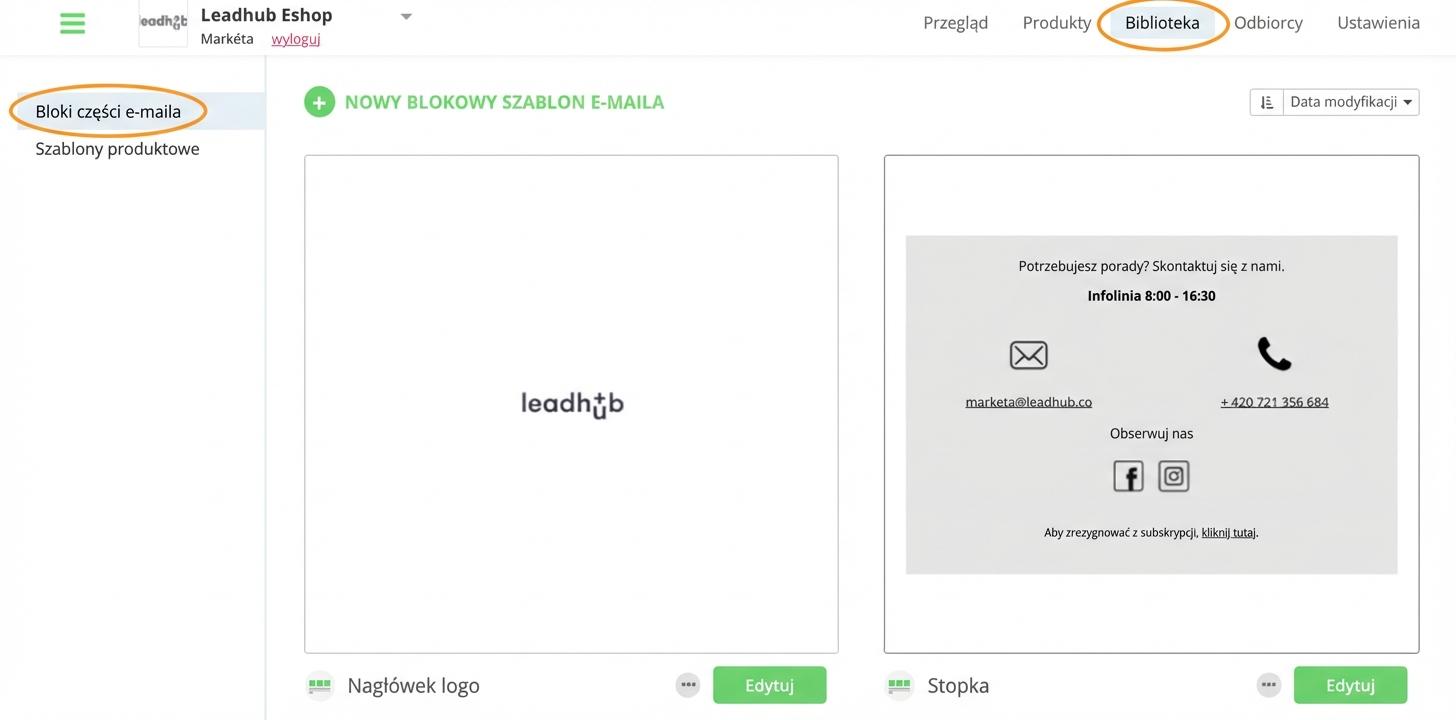 Szablony bloków e-maila utworzysz albo w zakładce "Biblioteka", albo bezpośrednio w kampanii w edytorze e-maili.