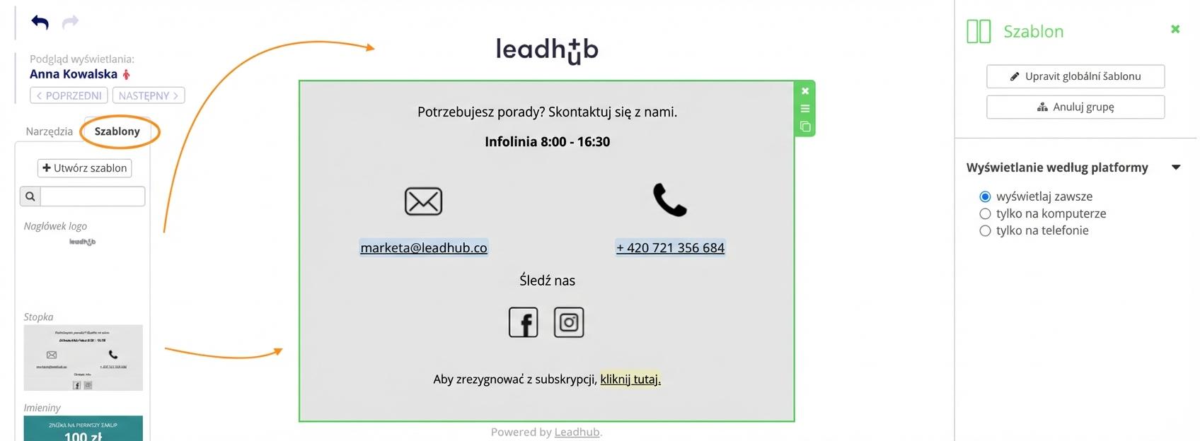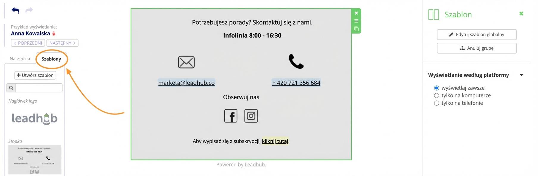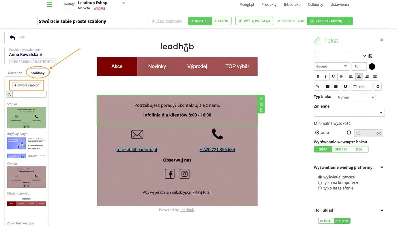 2. Albo bezpośrednio w edytorze e-maili w zakładce "Szablony".