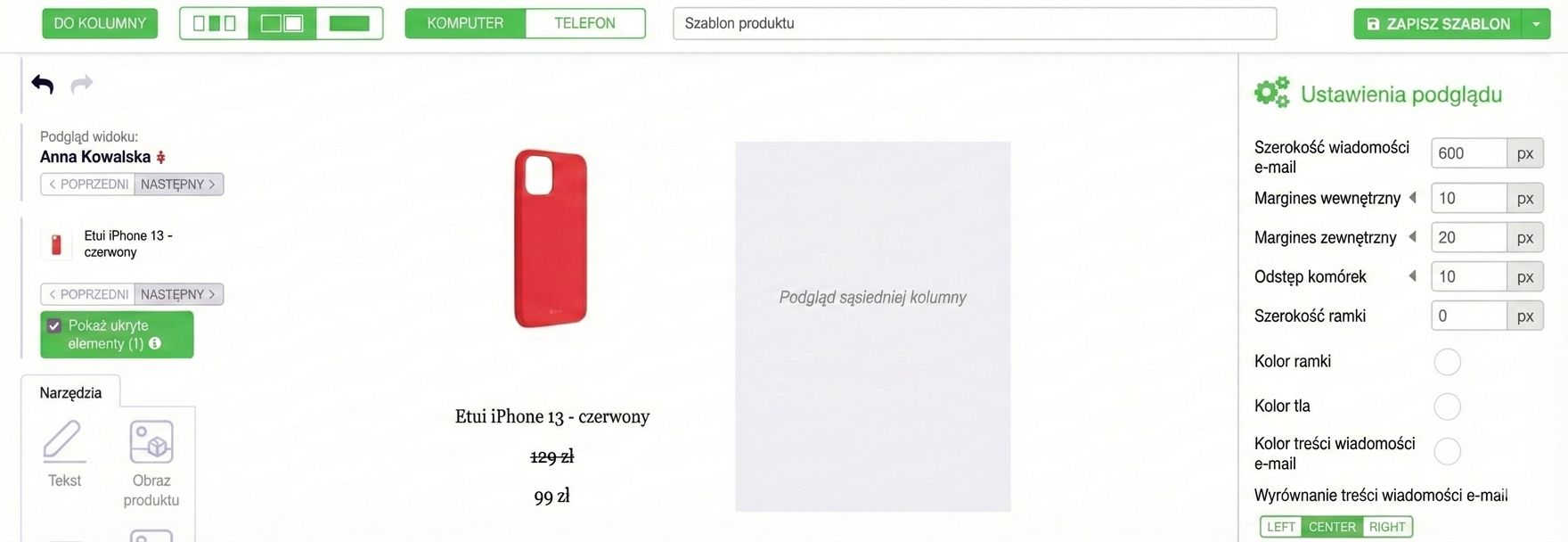 - wyświetlanie informacji o produktach nawet w przypadku, gdy odbiorca ma wyłączone wyświetlanie obrazów