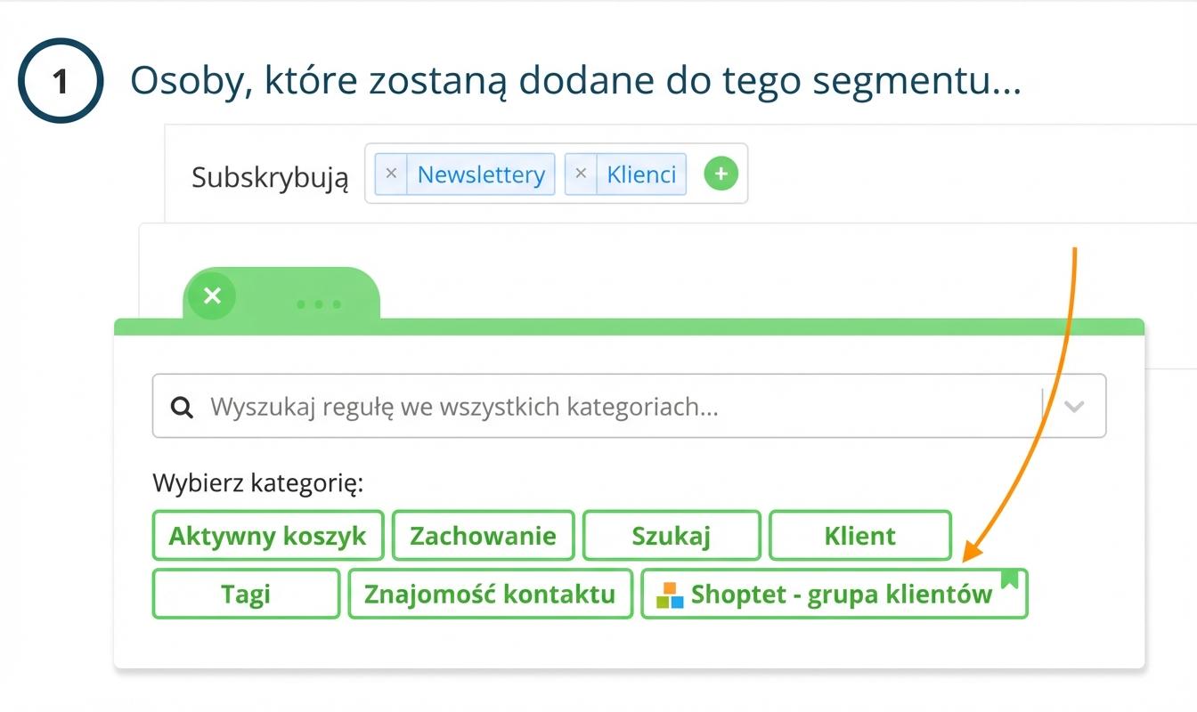 Wśród reguł segmentacji w Leadhubie znajdziesz kategorię " Shoptet - grupa klientów".