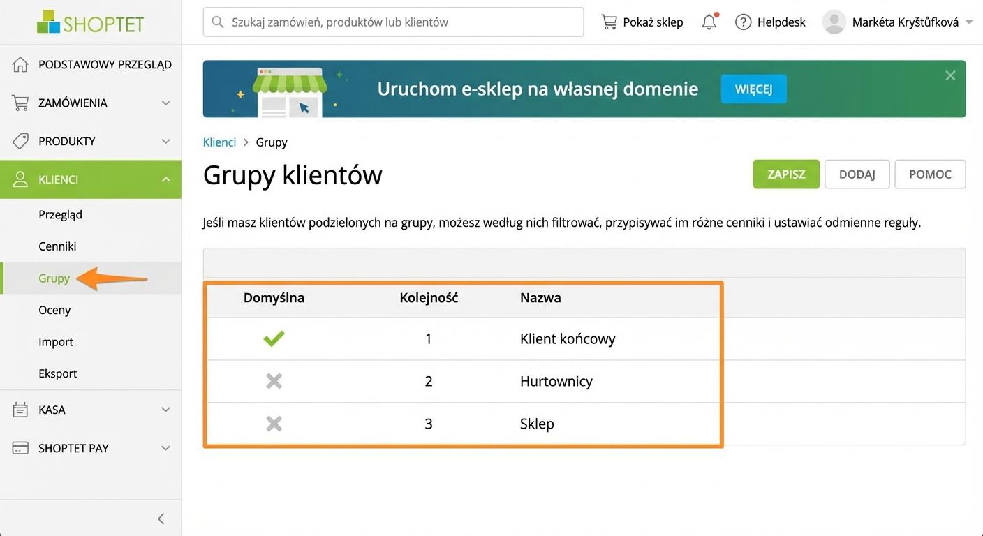 Grupy klientów w Shoptet