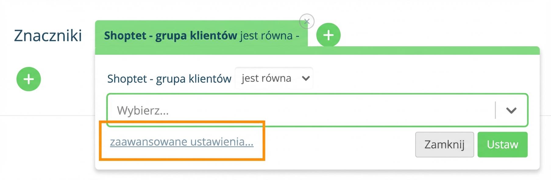 Jeśli potrzebujesz dokładniej zdefiniować czas przypisania etykiety według grupy klientów, wystarczy wybrać opcję " ustawienia zaawansowane".