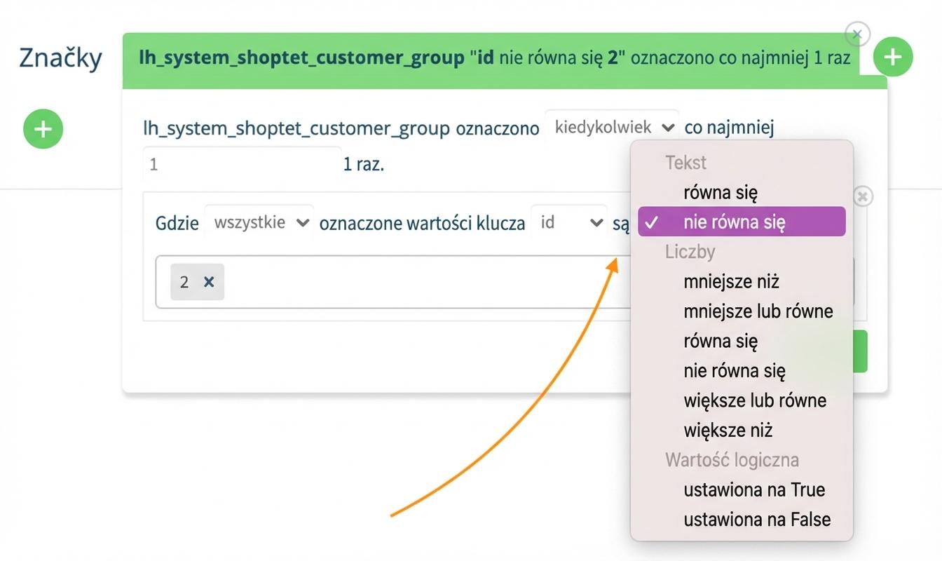 Wybierz regułę " Shoptet - grupa klientów nie jest równa + nazwa grupy klientów".
