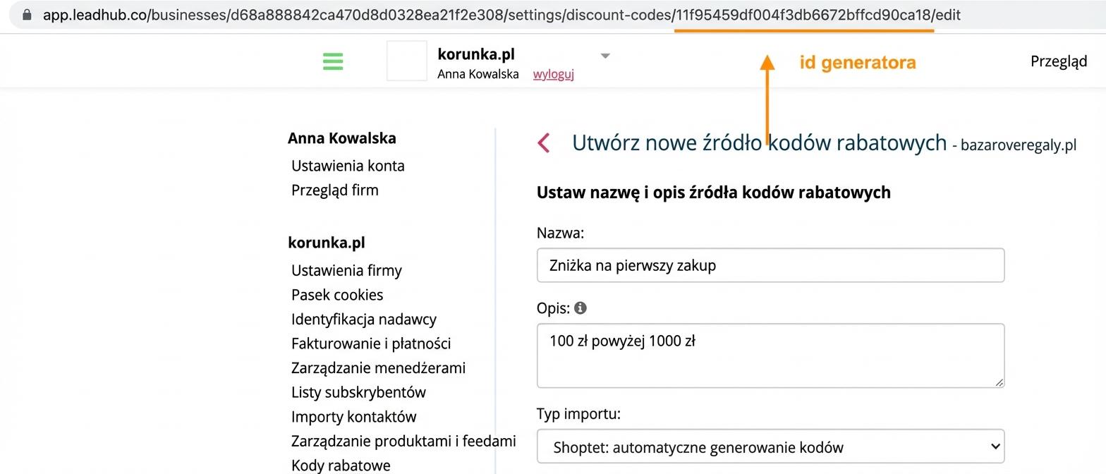 1. Jeśli nie masz utworzonego generatora Kodów rabatowych, utwórz go zgodnie z tą instrukcją.