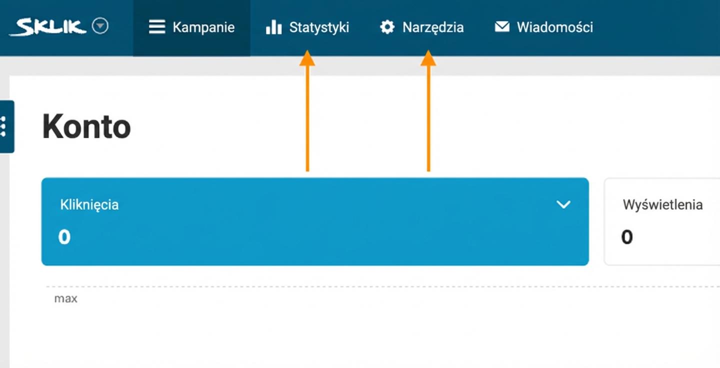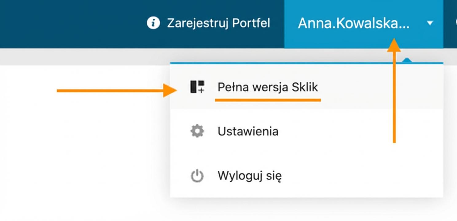 Jeśli ich nie widzisz, kliknij w prawym górnym rogu swoje imię i wybierz opcję „Pełna wersja Sklik”.