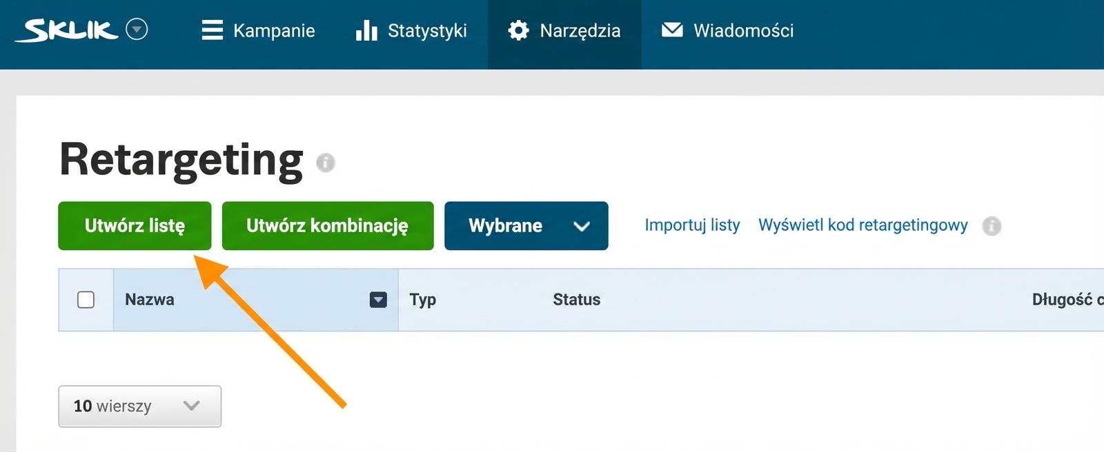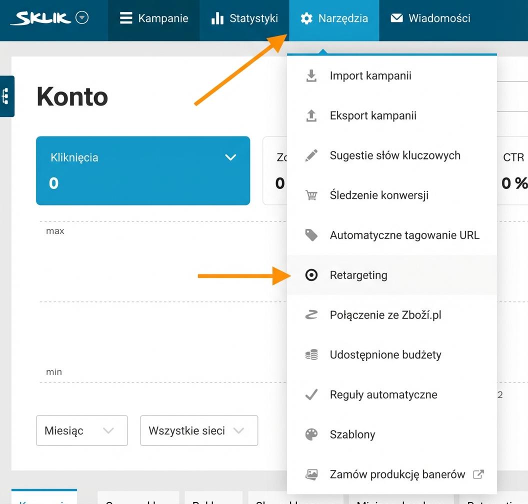 2. Na swoim koncie w Skliku przejdź do „Ustawienia” i wybierz pozycję „Retargeting”.