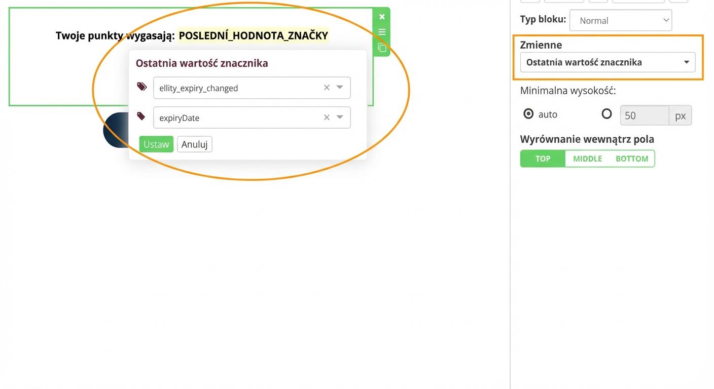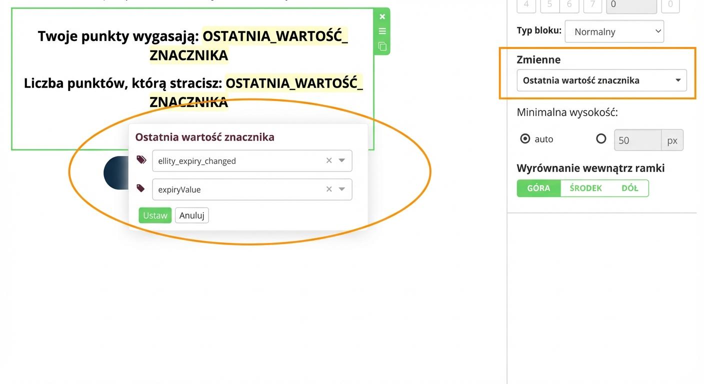 4. Bezpośrednio w e-mailu możesz wyświetlić liczbę punktów oraz datę, kiedy wygasają. Wartości wyświetlisz na podstawie „Zmiennej” i jej wartości.