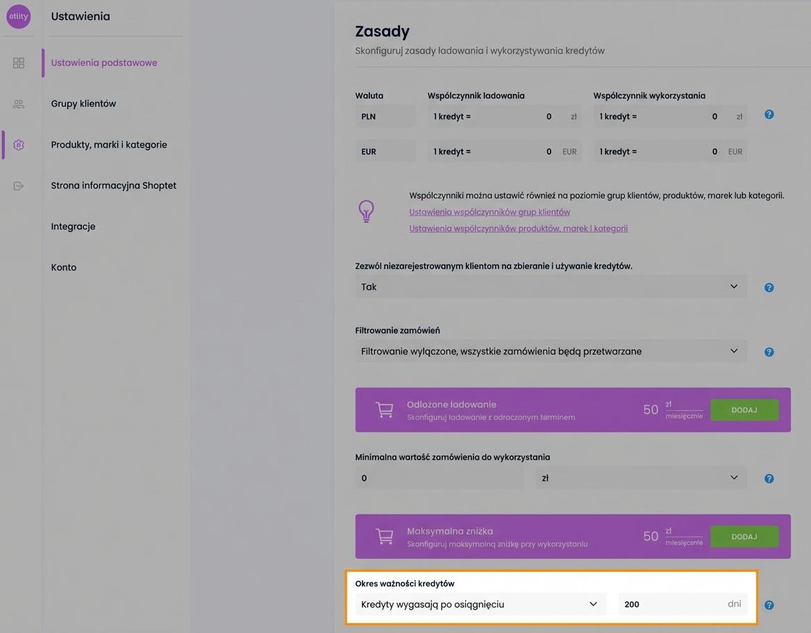 W interfejsie Ellity ustawisz także okres ważności punktów.