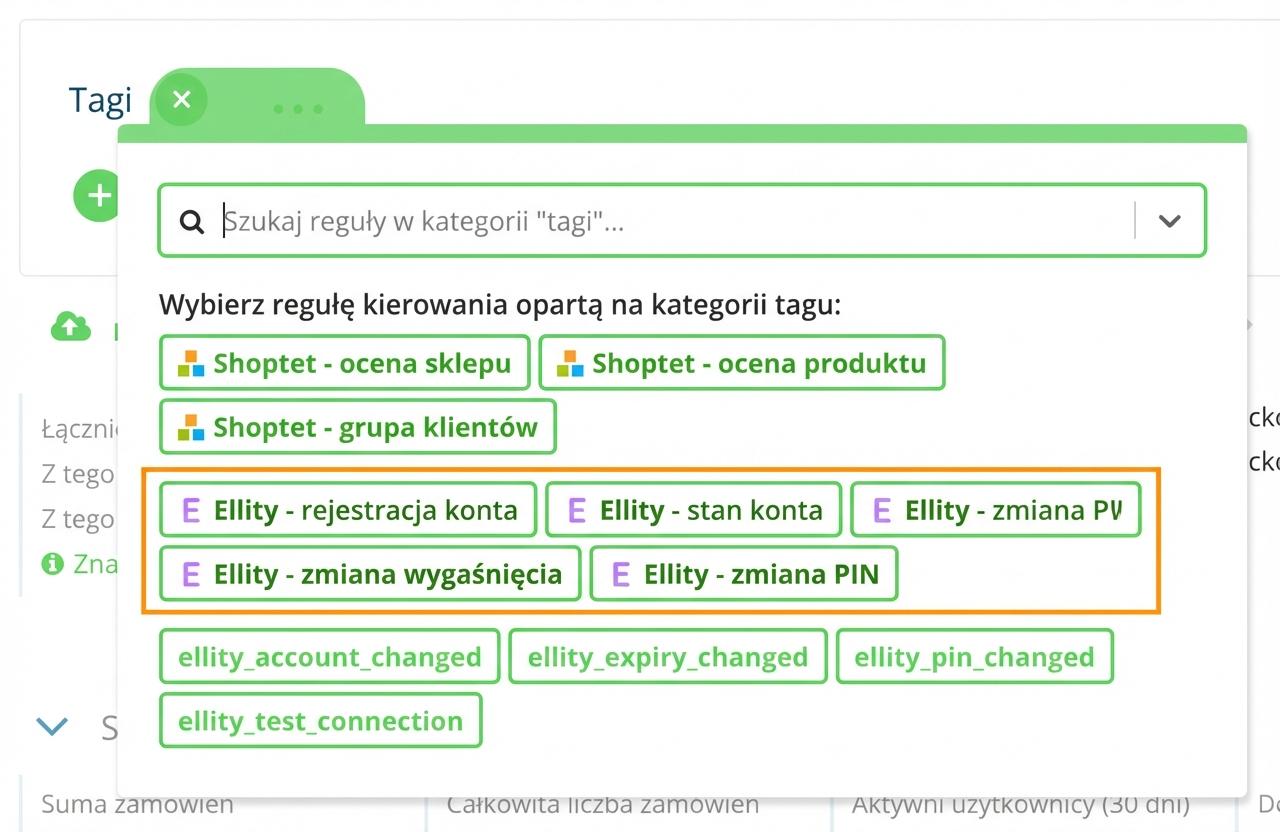 Zostaną utworzone dwie sekcje tagów Ellity. Do targetowania kampanii zalecamy używanie pierwszych tagów (z logo Ellity).