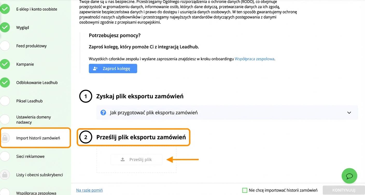 - wyeksportować historię zamówień i zaimportować ją do Leadhubu