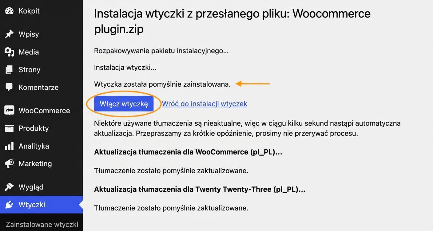 Wtyczka zacznie się instalować automatycznie. Gdy instalacja zostanie zakończona, kliknij opcję „Aktywuj wtyczkę”.