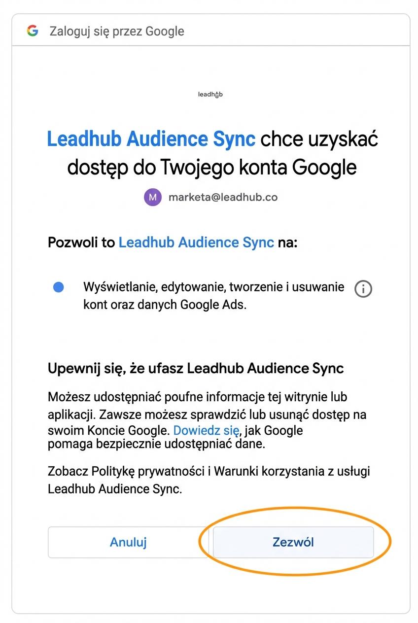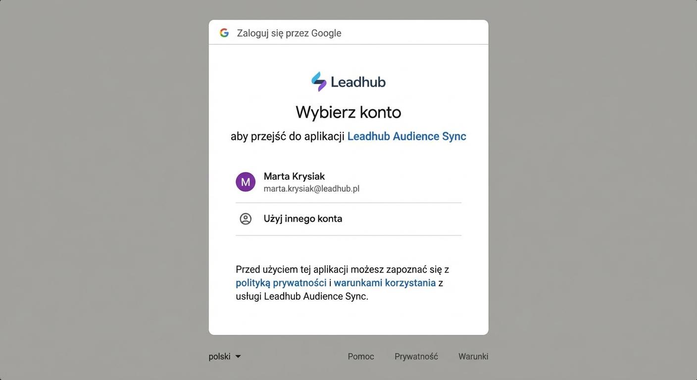 Zostaniesz automatycznie przekierowany do wyboru konta, które chcesz połączyć z Leadhubem.