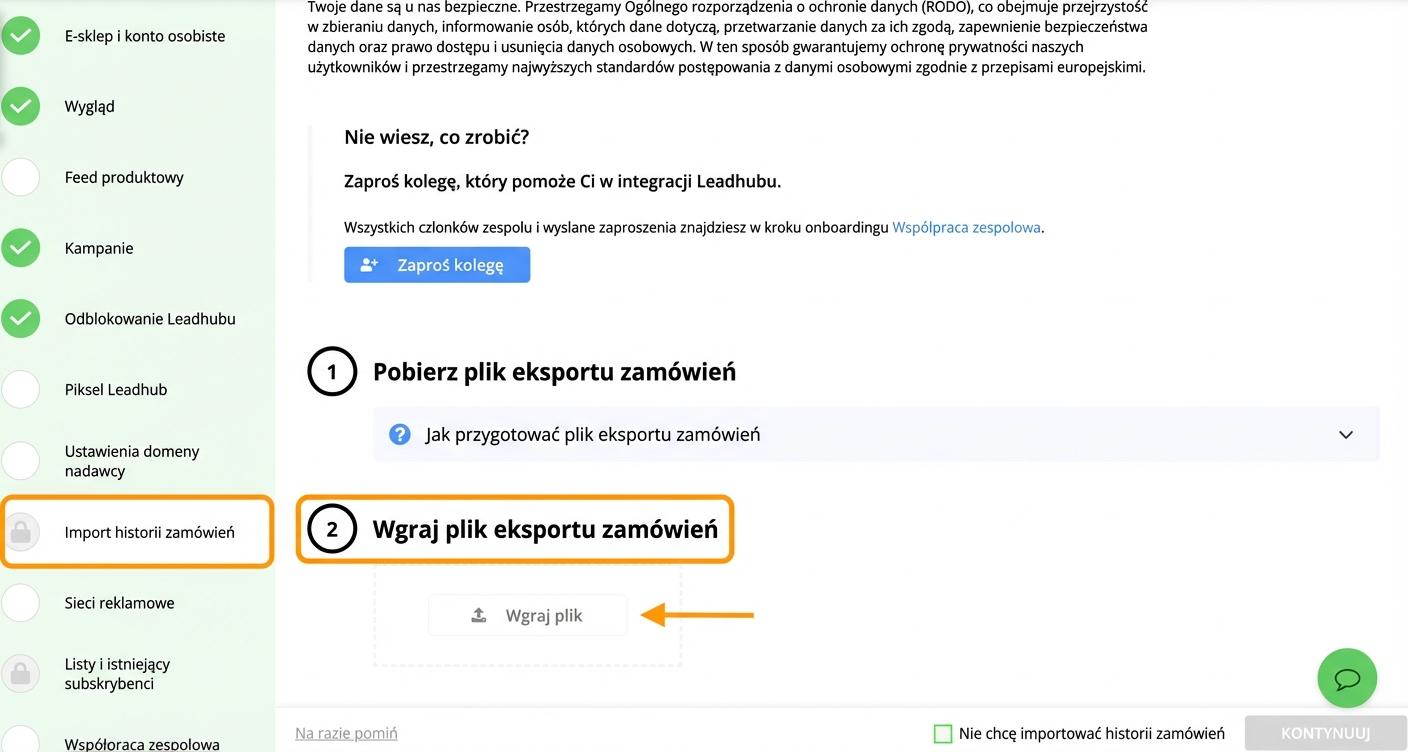 - wyeksportować historię zamówień i zaimportować ją do Leadhubu