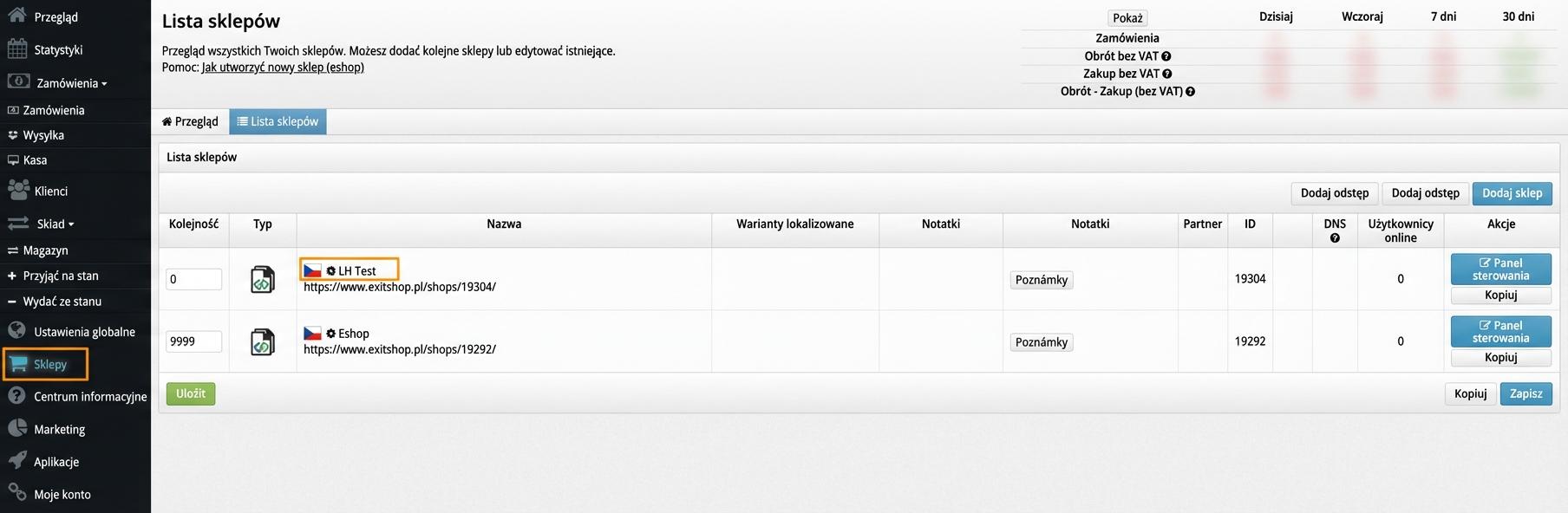 - Najpierw wybierz odpowiedni e-sklep w zakładce „Sklepy”.