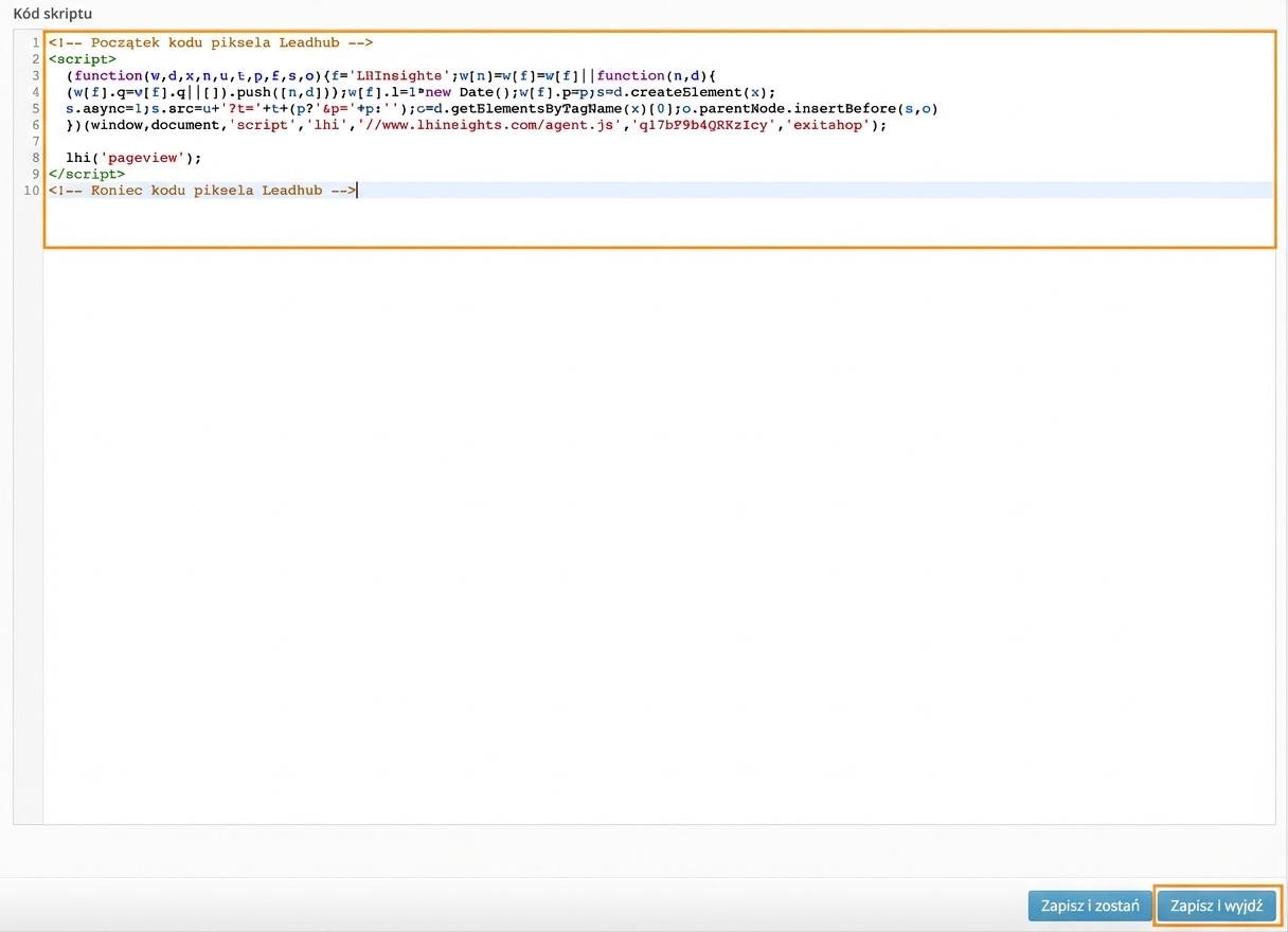 Jak wstawić skrypt w panelu administracyjnym Exitshopu