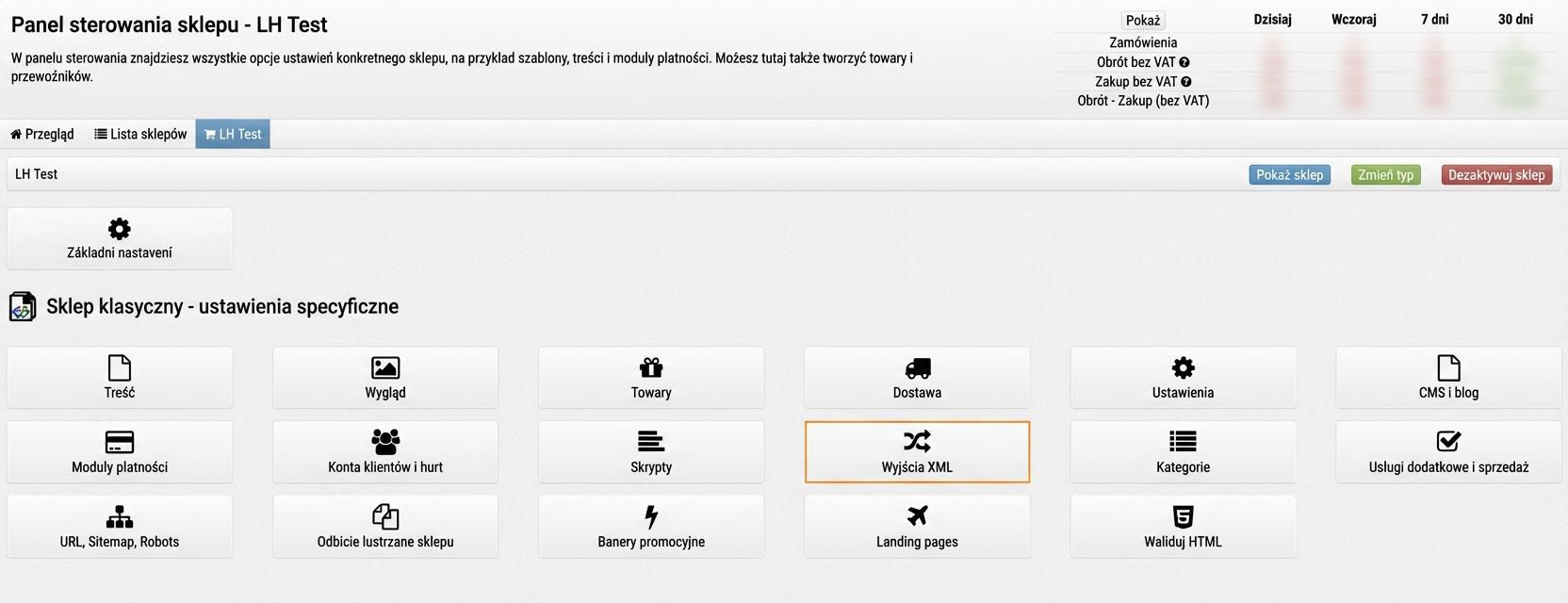- W panelu sterowania sklepu przejdź do zakładki „Wyjścia XML”.