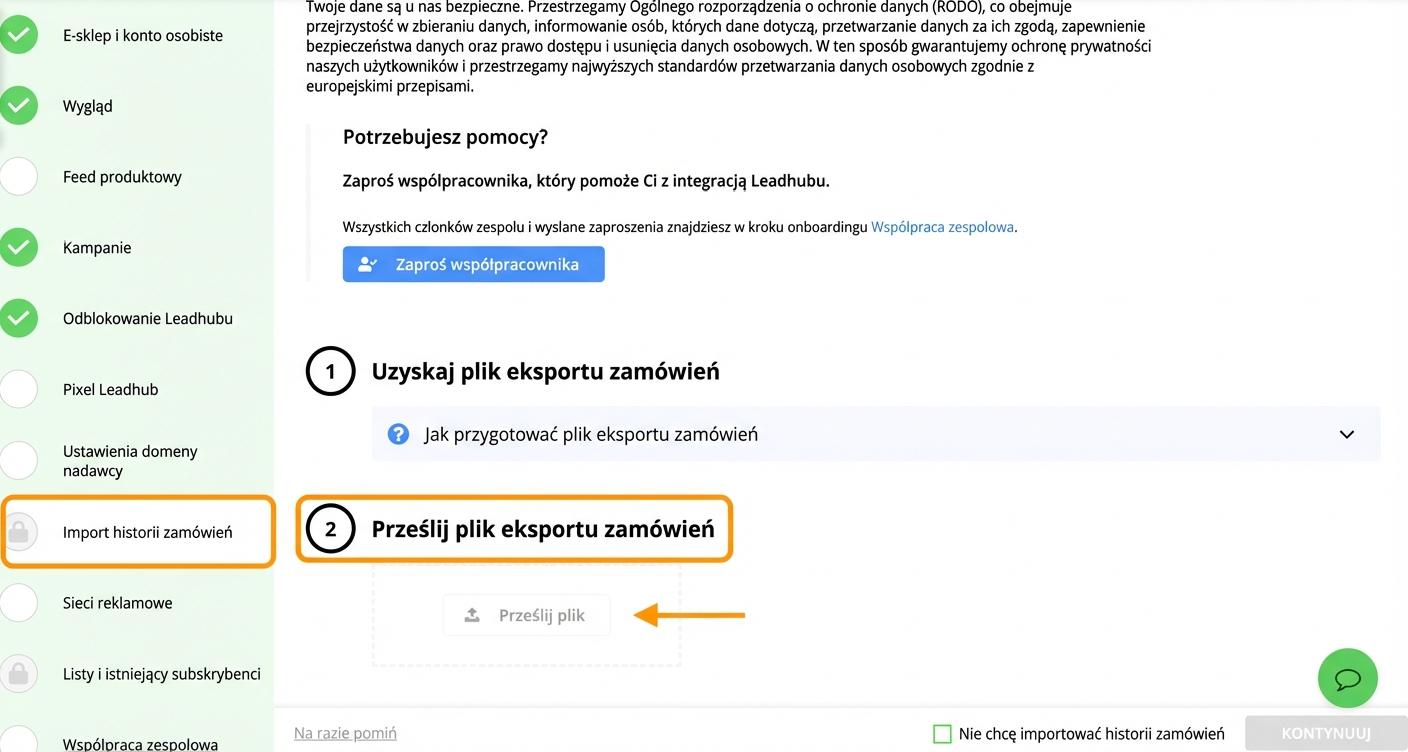 - wyeksportować historię zamówień i zaimportować ją do Leadhubu