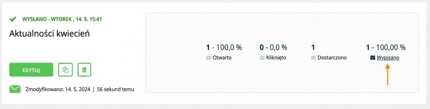 W przypadku każdej kampanii e-mailowej z łatwością sprawdzisz, kto się z niej wypisał.