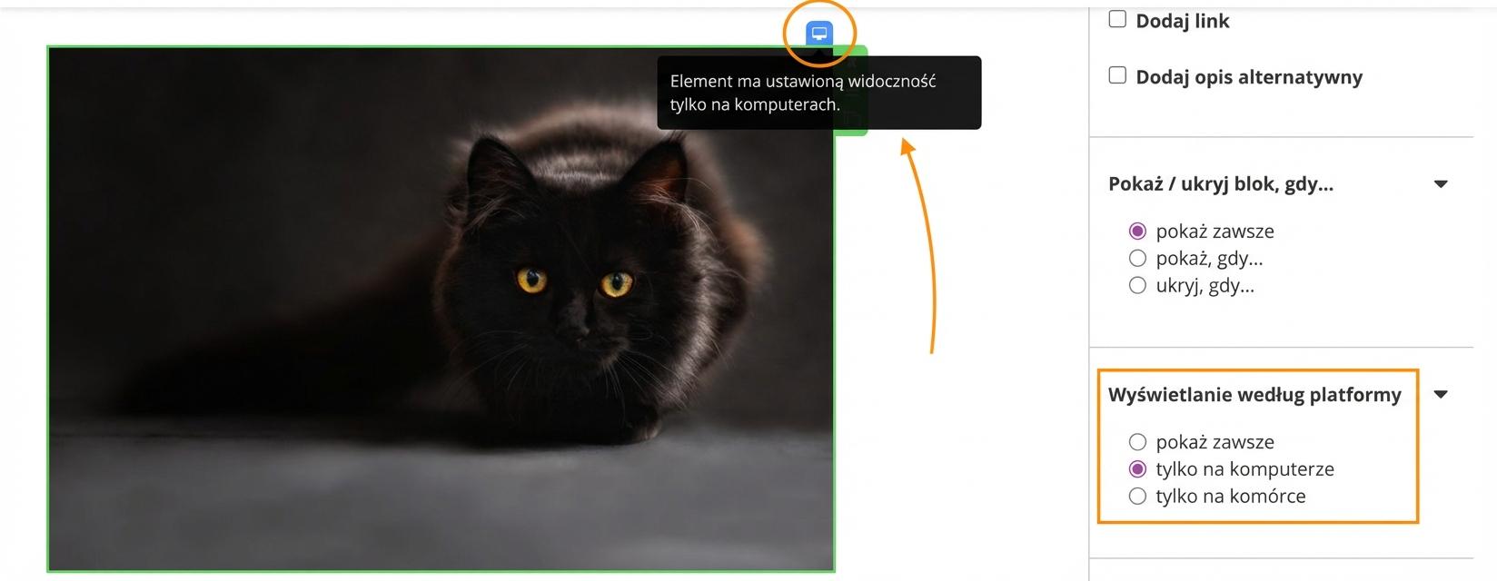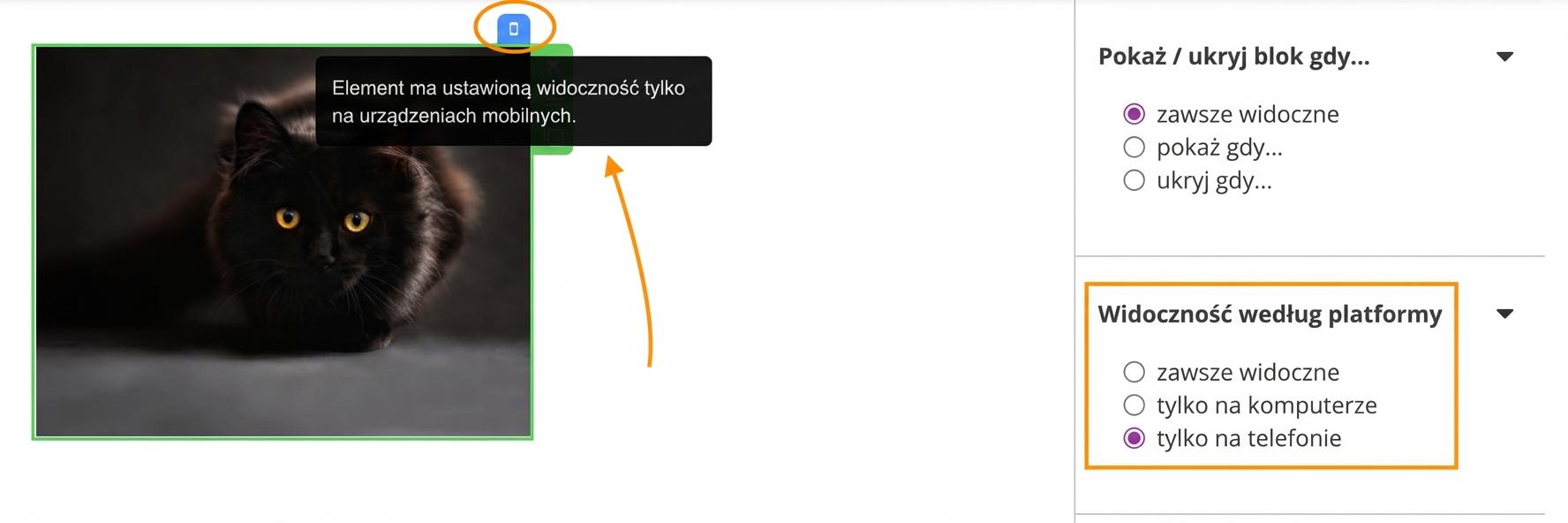 Po ikonie przy bloku. Dzięki temu będziesz wiedzieć, czy element jest ustawiony wyłącznie do wyświetlania na telefonie komórkowym czy na desktopie. Nie zdarzy Ci się więc, że np. zapomnisz podmienić obrazek dla wersji mobilnej.