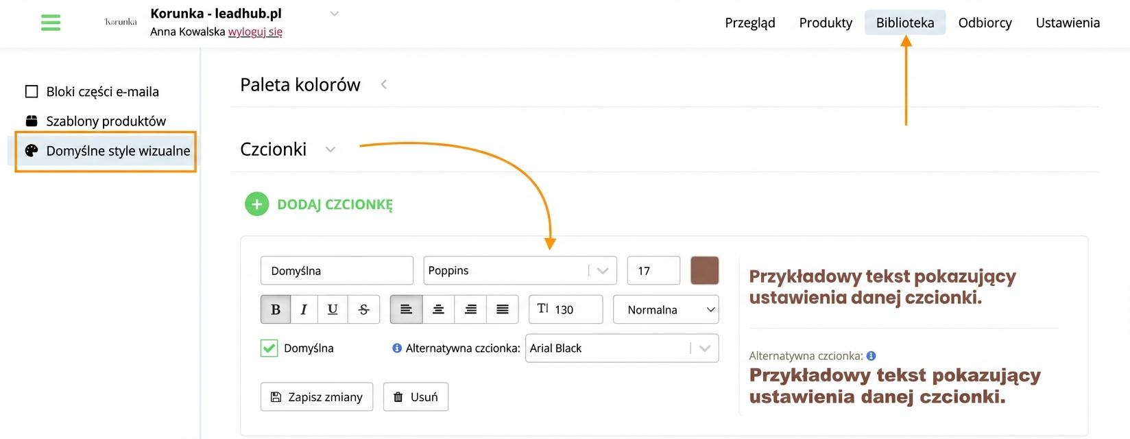 W ustawieniach Twojego konta w Leadhubie możesz skonfigurować dowolną liczbę stylów czcionek i ich formatowania. Pozwoli Ci to zaoszczędzić czas podczas tworzenia kampanii, a jednocześnie będziesz mieć pewność, że zawsze używasz spójnego formatowania.