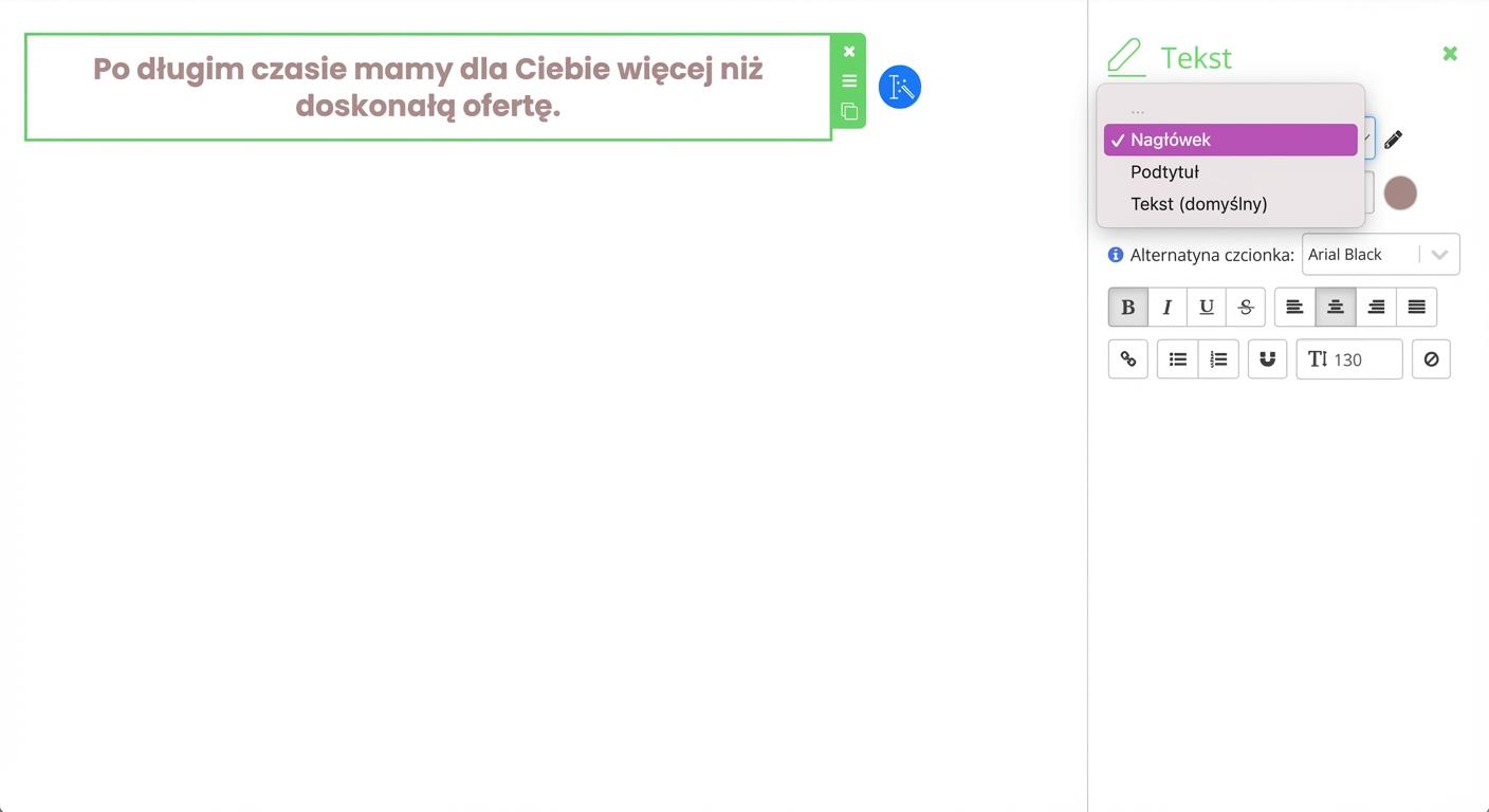 Ustaw jeden styl domyślny – czyli zawsze, gdy w e-mailu umieścisz pole tekstowe, czcionka będzie miała właśnie ten ustawiony styl domyślny.