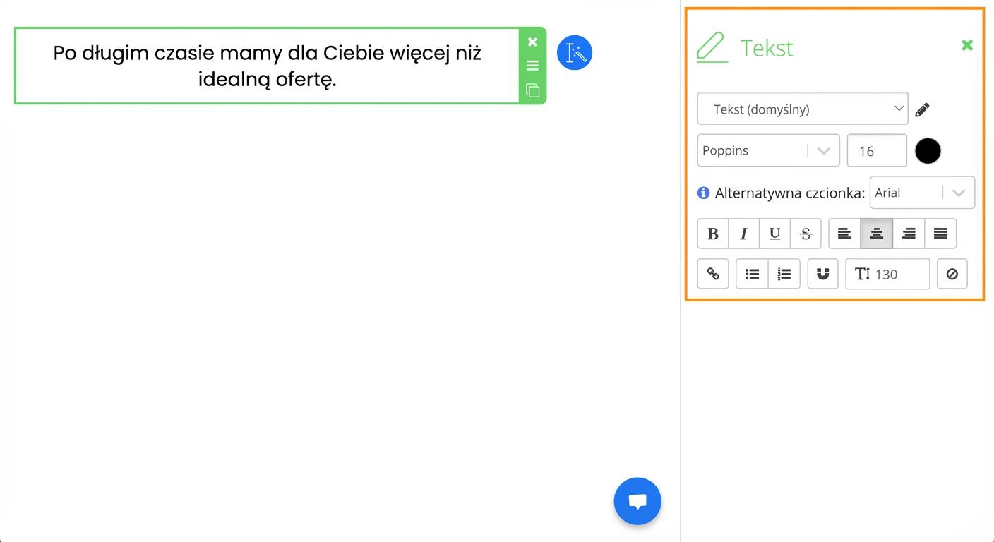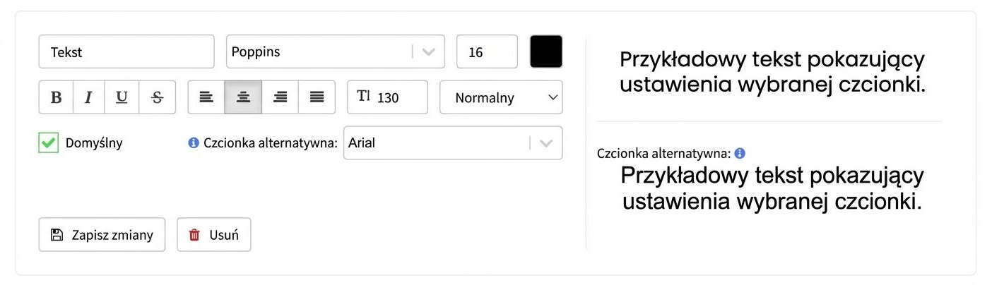 Wybierz font, font alternatywny, wyrównanie i kolor. Po prawej stronie zobaczysz, jak będzie wyglądał tekst.