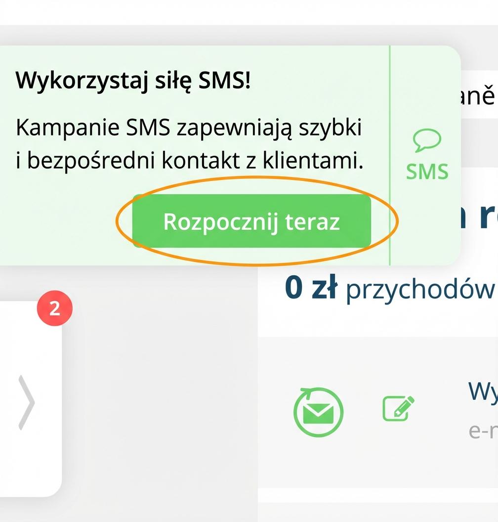 Jeśli zamknąłeś to okno informacyjne, po lewej stronie (nad centrum powiadomień) znajdziesz możliwość powrotu do aktywacji kampanii SMS w dowolnym momencie.