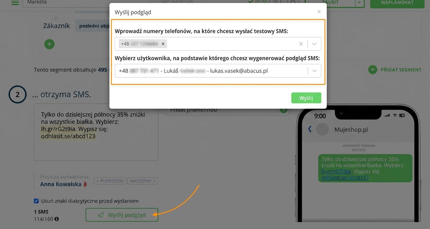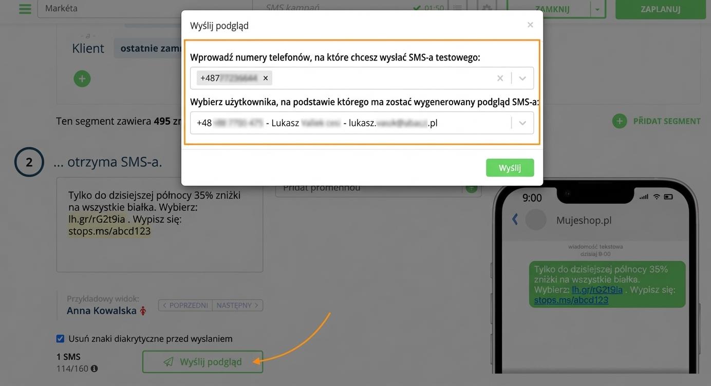 Wyślij sobie podgląd kampanii SMS.
